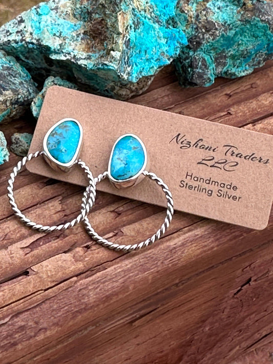 Handmade Kingman Turquoise & Sterling Silver Twisted Hoop EarringsRegular price $99.00 USDRegular priceUnit price / per-