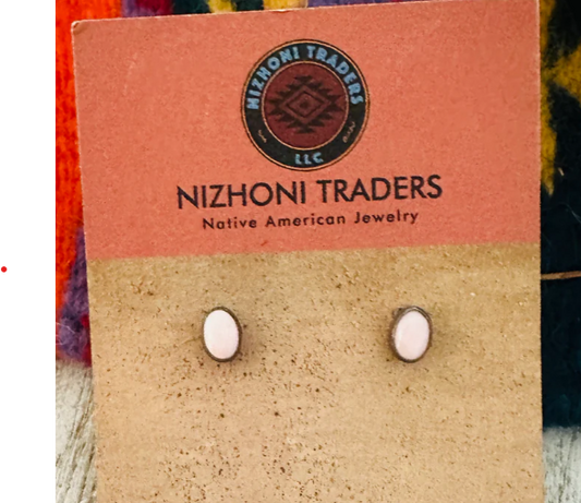 Navajo Sterling Silver & Queen Pink Conch Shell Stud Earrings