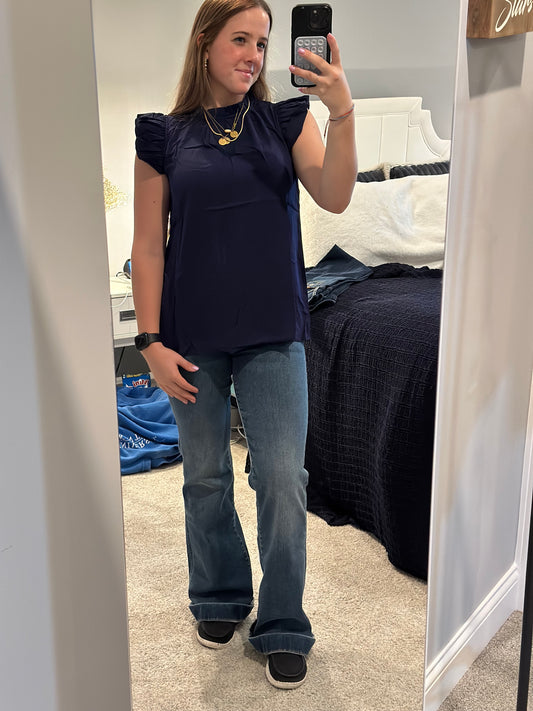 Sold outNavy Blue Ruffled mock neck top