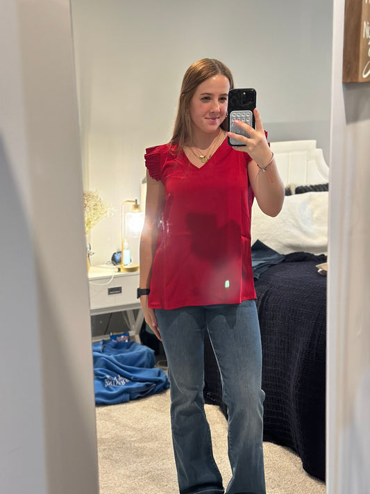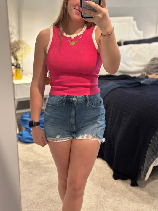 Red Stripe Textured Knit Ribbed Hem Sweater Tank Top
