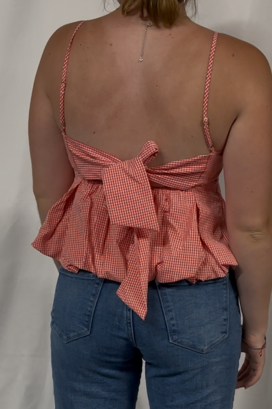 Sleeveless Back Tie Detail Bubble Hem Top