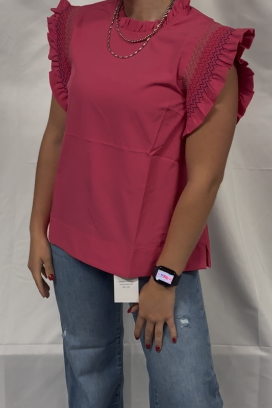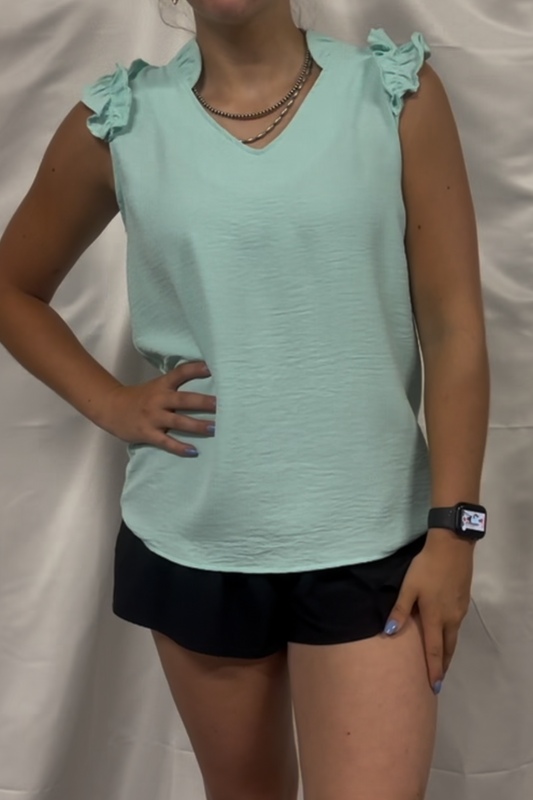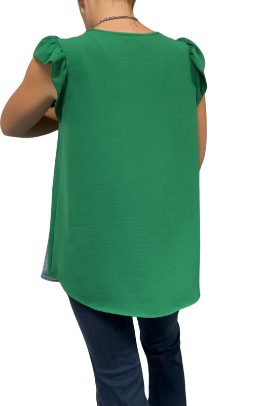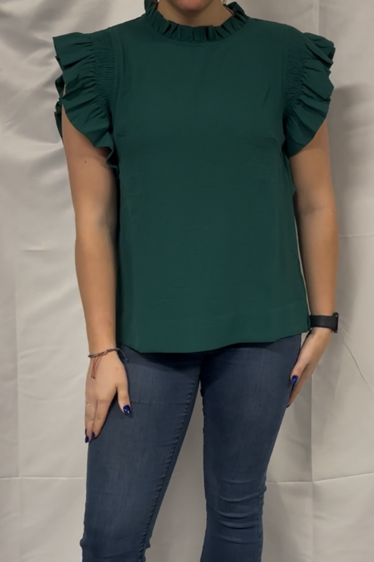 Solid Top With V Neck Detail And Ruffled Sleeves