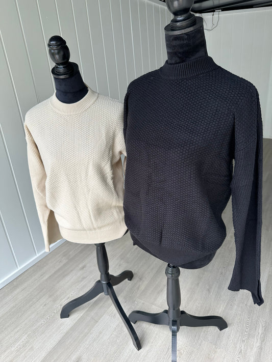 Solid Textured Knit Split Cuff Drop Shoulder Loose Sweater