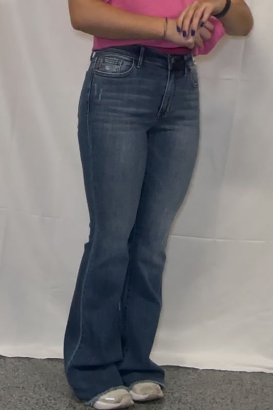 Vintage Wash Flare Jeans W/ Destroy And Fray Hem