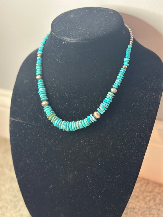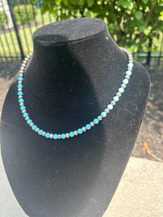4mm sterling silver + 4mm pink conch + 6mm kingman beaded necklace