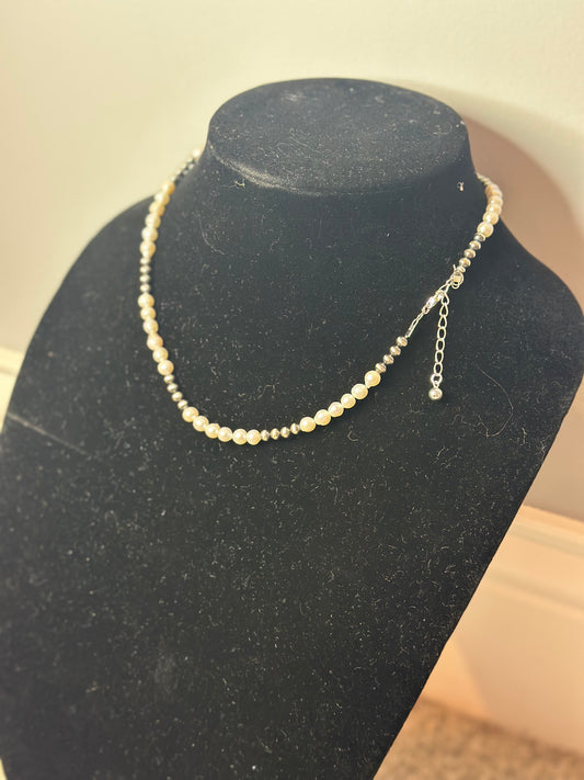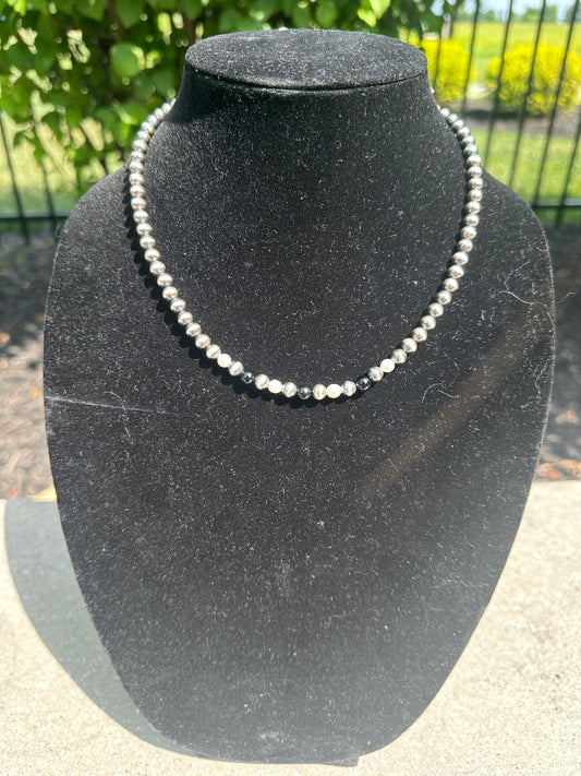 6mm navajo style pearl necklace + black onyx/freshwater pearls