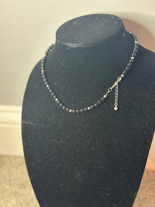 4mm sterling silver torpedo + 6mm black onyx necklace
