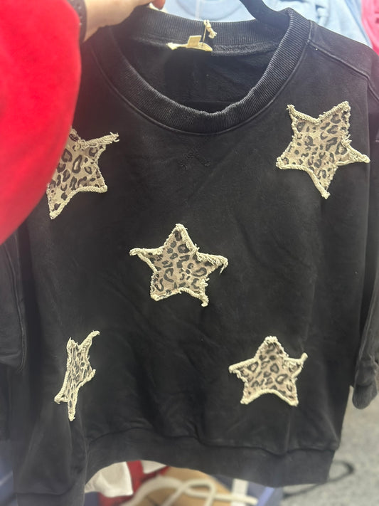 3/4 sleeves washed casual top with leopard star patch detail.