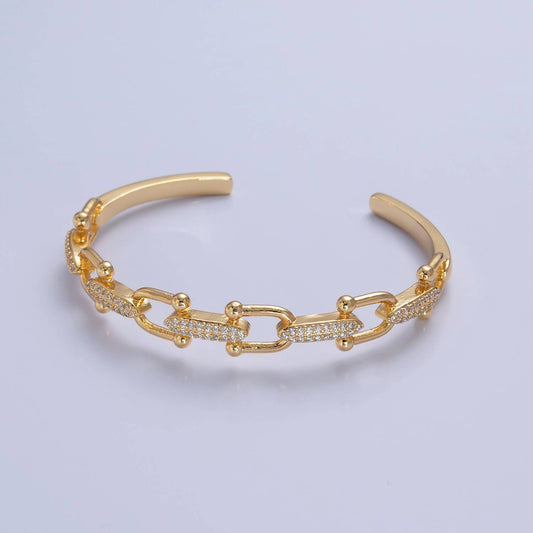 Gold U Link Bangle Cuff Bracelet Silver CZ Link Chain