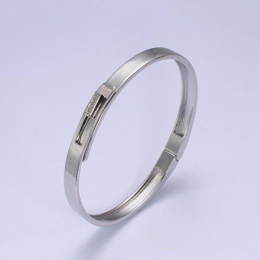 Minimalist Lock CZ Crystal Cubic Zirconia Paved Bangle Bracelet in Silver / Gold | WA-629 WA-630 Clearance Pricing