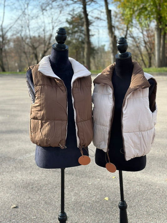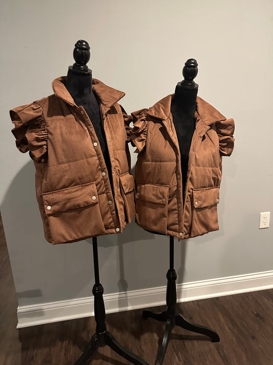 RUFFLE SLEEVE FLAP POCKETS CORDUROY PUFFER VEST
