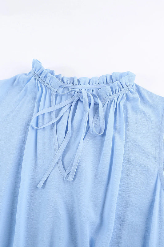 Sky Blue Reversible Frill V Neck Sleeveless Swing Mini Dress