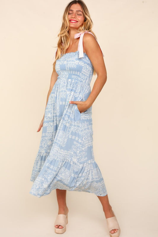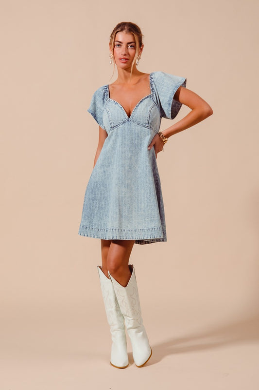 Mineral Washed Bow Ribbon Denim Flare Dress