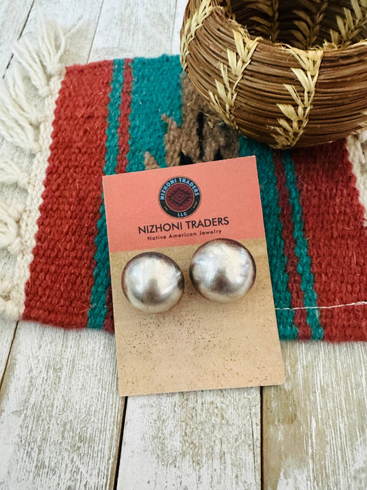 Navajo Sterling Silver Pearl Stud Earrings 16mm