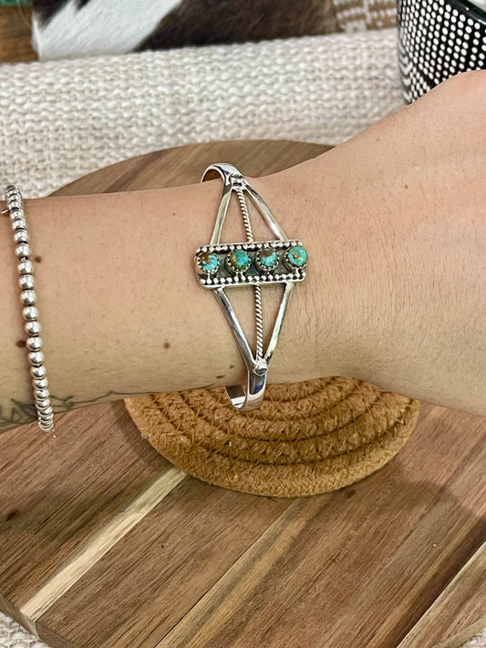 Beautiful Handmade Kingman Turquoise & Sterling Silver 4 Stone Cuff