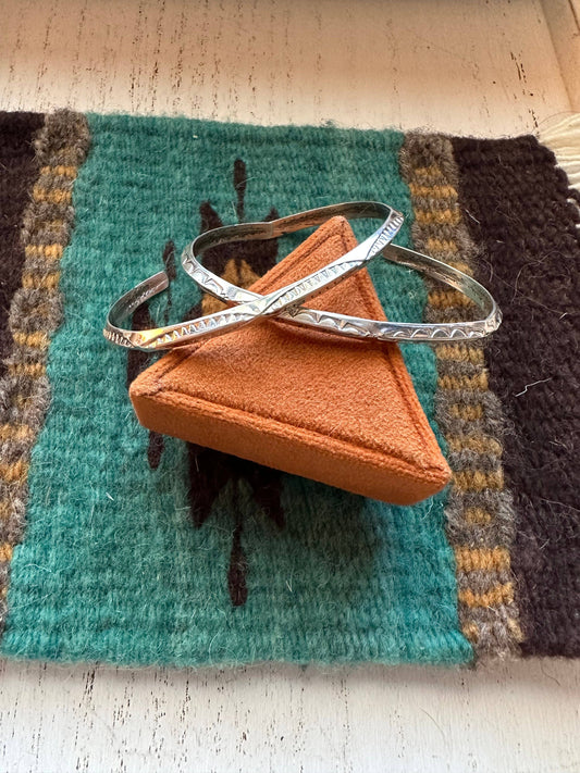 “The Tahe Stacker” Navajo Sterling Silver Star Adjustable Thin Cuff Bracelet Signed L Tahe