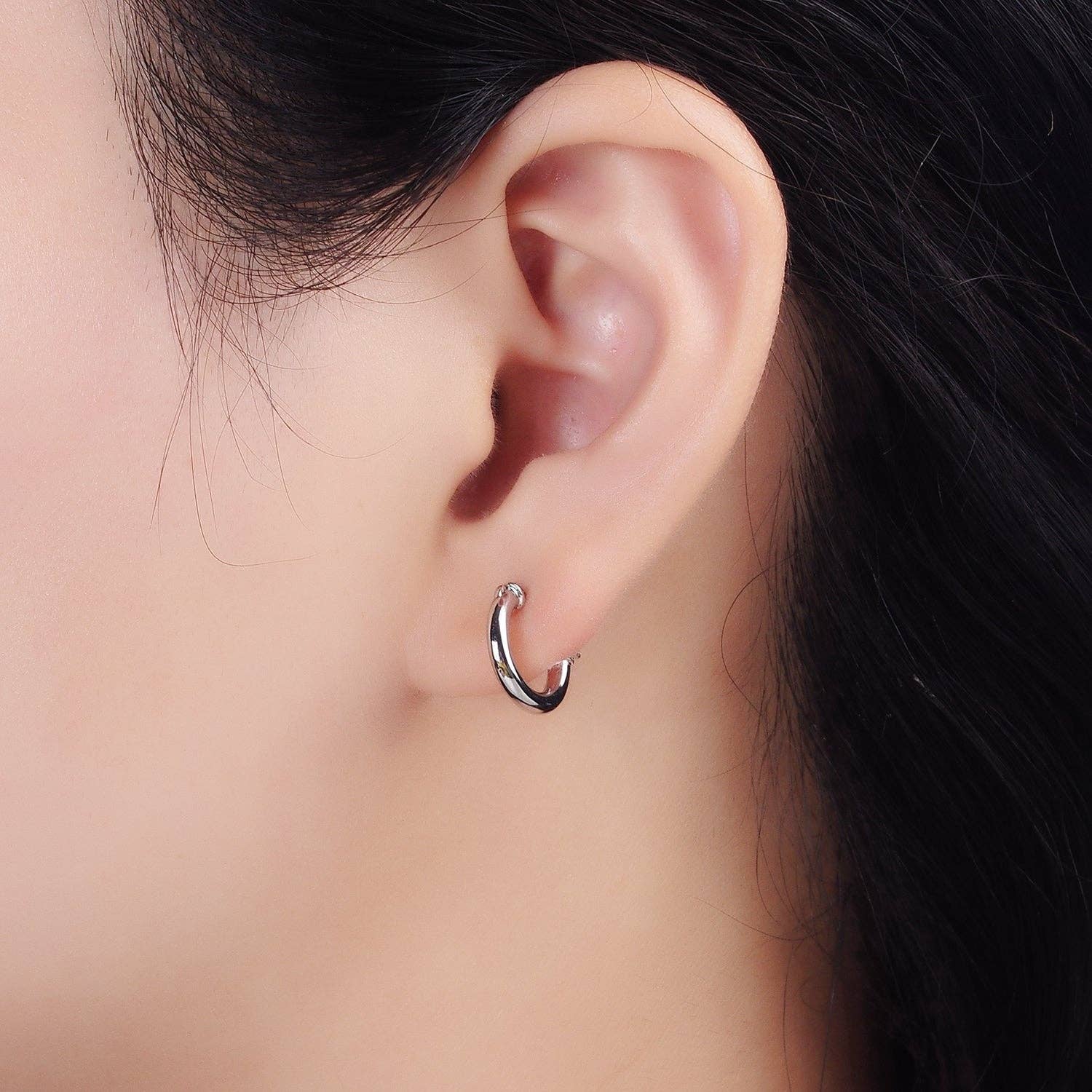 Gold Filled 12mm Tube Minimalist French Latch Hoop Earrings in Gold & Silver | AE116 AE117