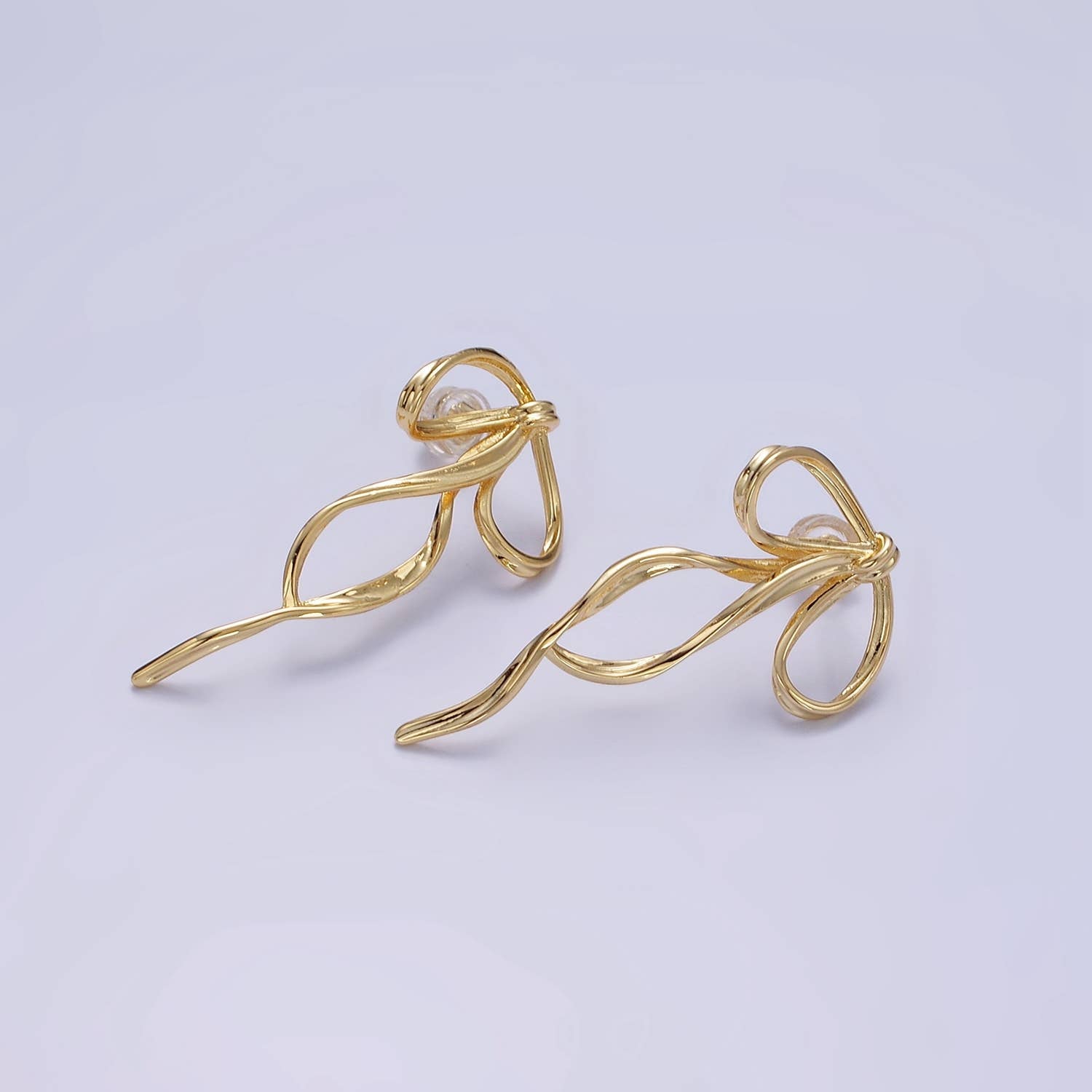 Gold Filled Curved Tied Ribbon Bow Stud Earrings