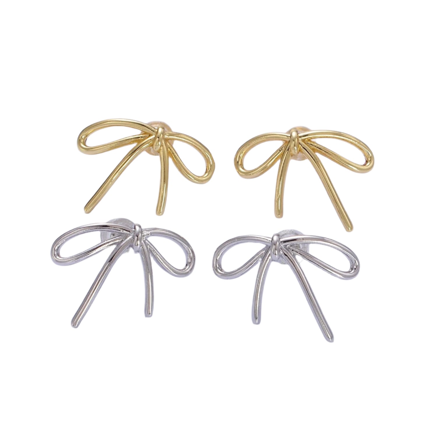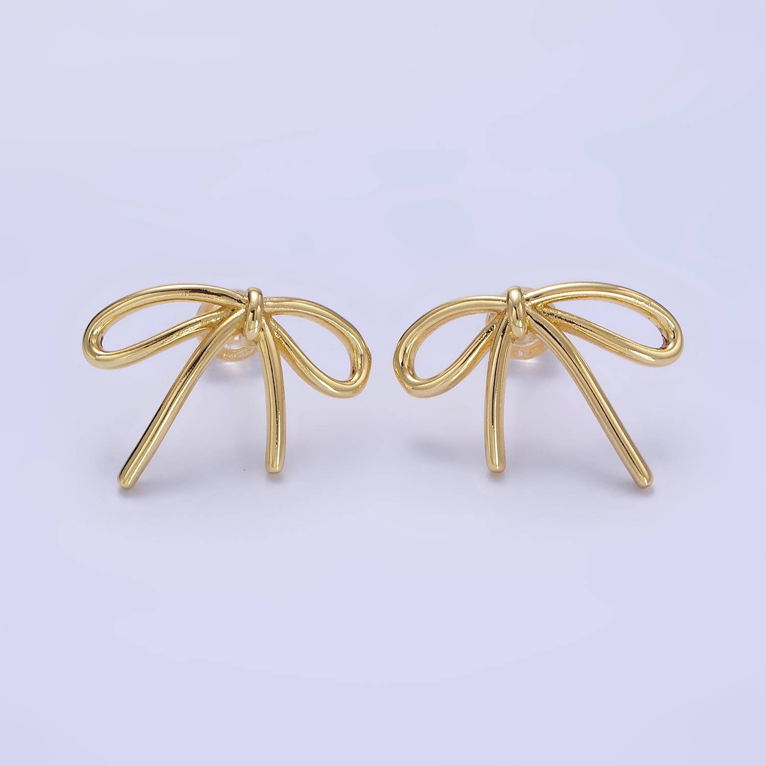 Gold Filled Minimalist Tied Ribbon Bow Stud Earrings 14K