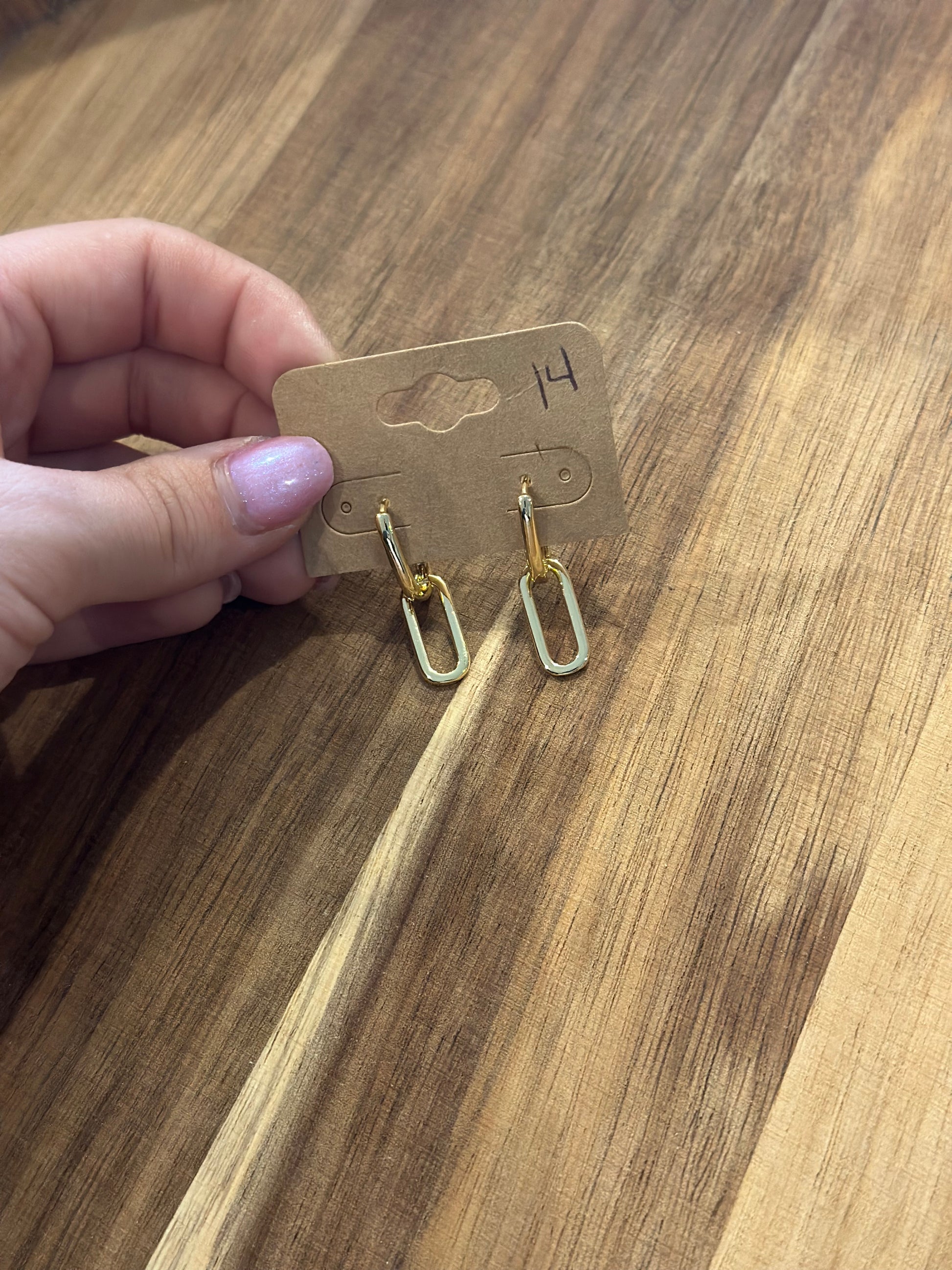 Gold Filled Oval Hoop Chunky Earrings With Dangle Link Chain Rectangular Hoop Earrings, Geometric Hoops T-295
