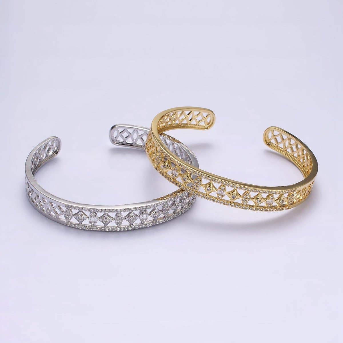 14K Gold Filled Spade Marquise Lined Micro Paved CZ Open Cuff Bangle Bracelet in Gold & Silver | WA-1931 WA-1932 Clearance Pricing