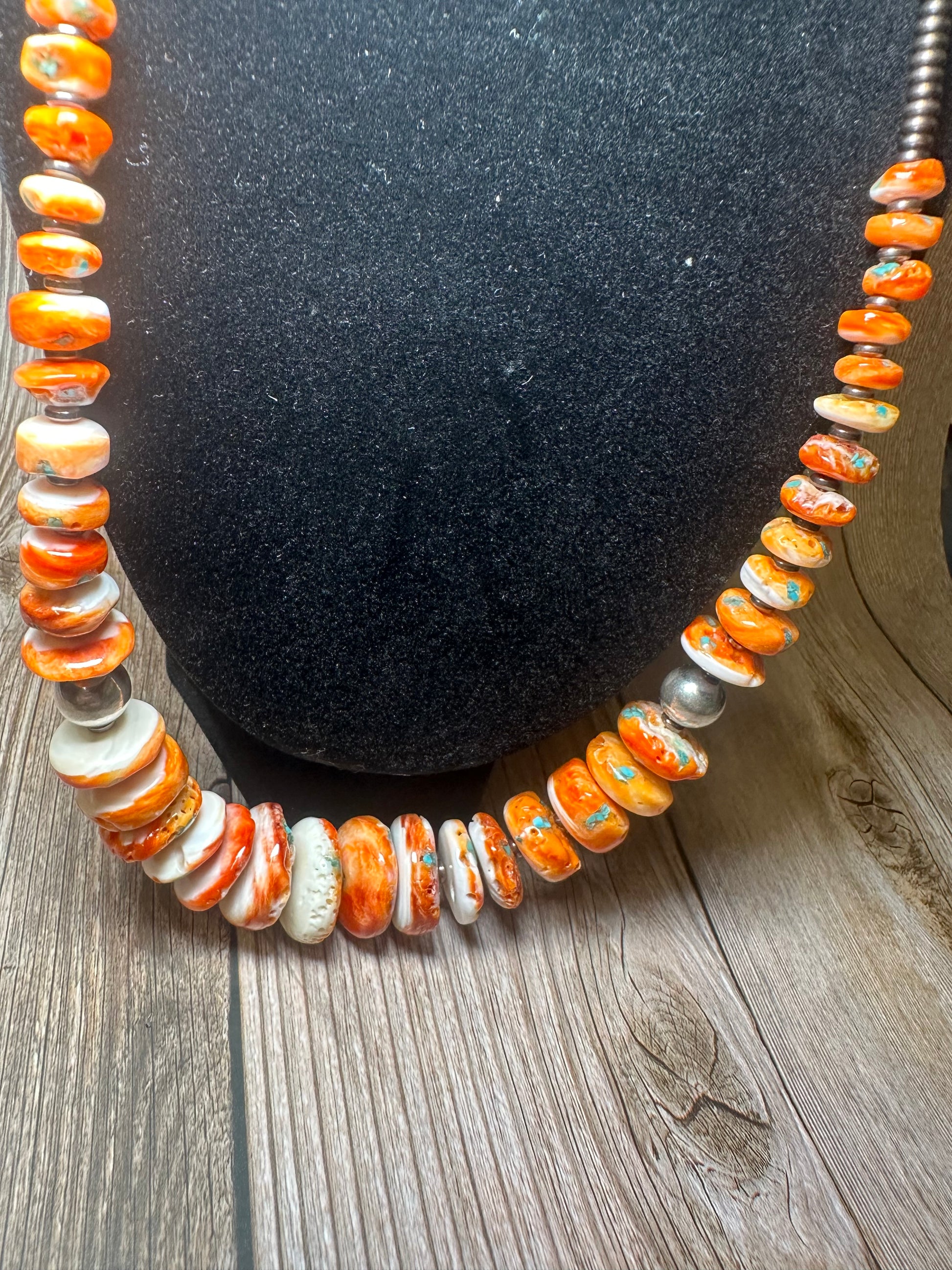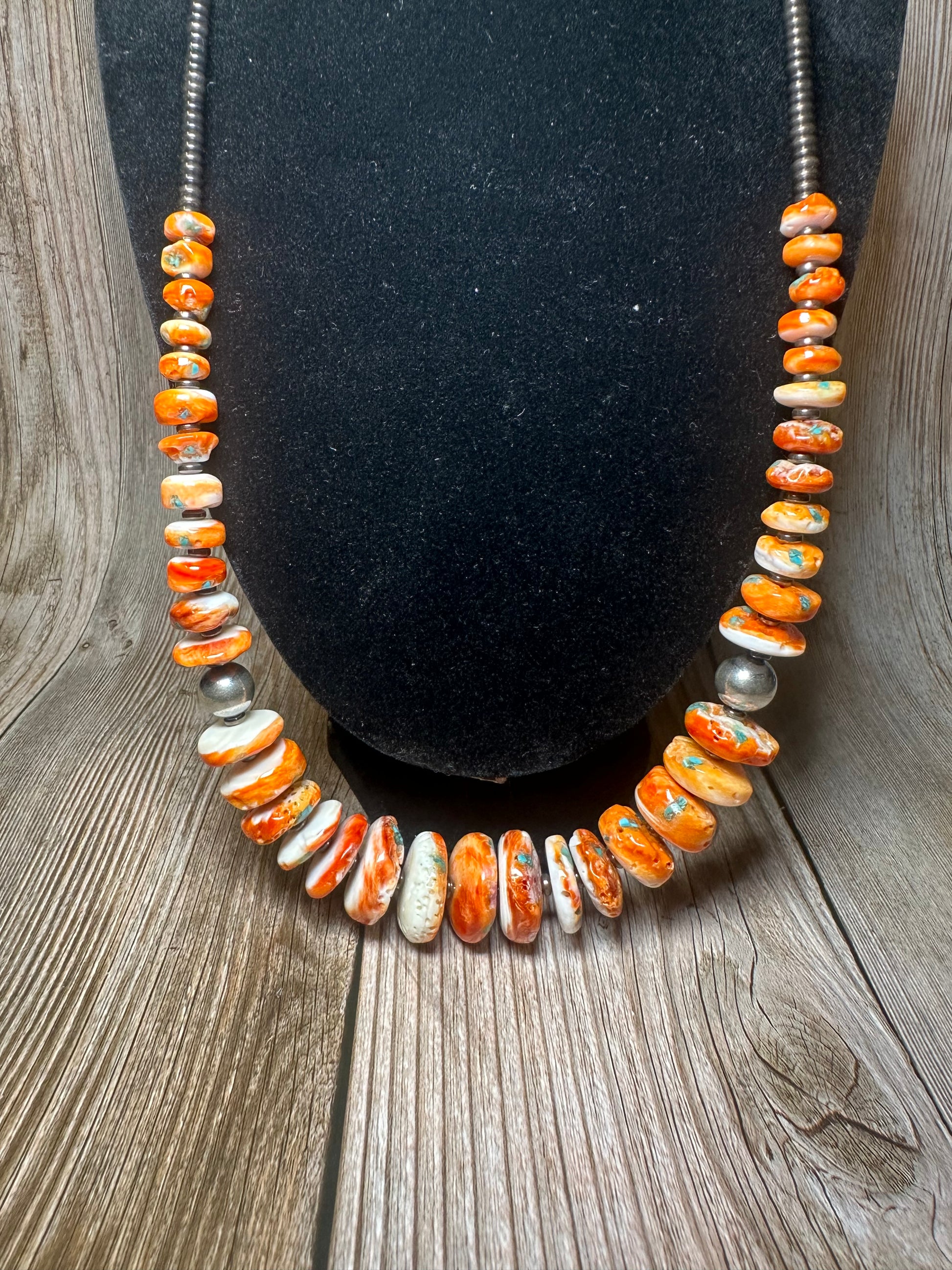 Crafted from genuine sterling silver, these 22 inch orange spiny, turquoise, and sterling silver pearls are the perfect addition to any western jewelry collection. Expertly made in America, these pearls exude elegance and authenticity.