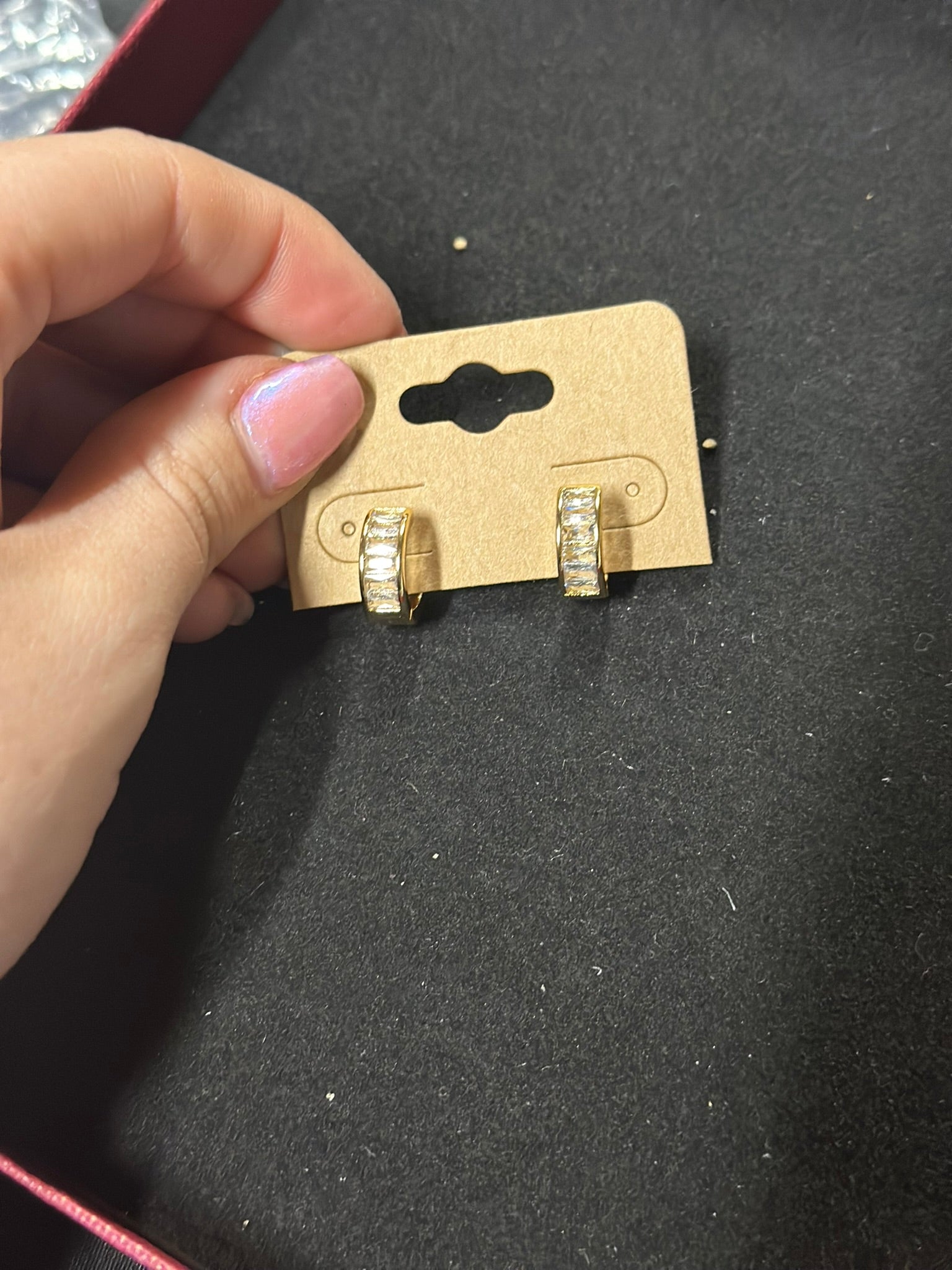 24K Gold Filled Clear Baguette Cubic Zirconia Simple Minimal