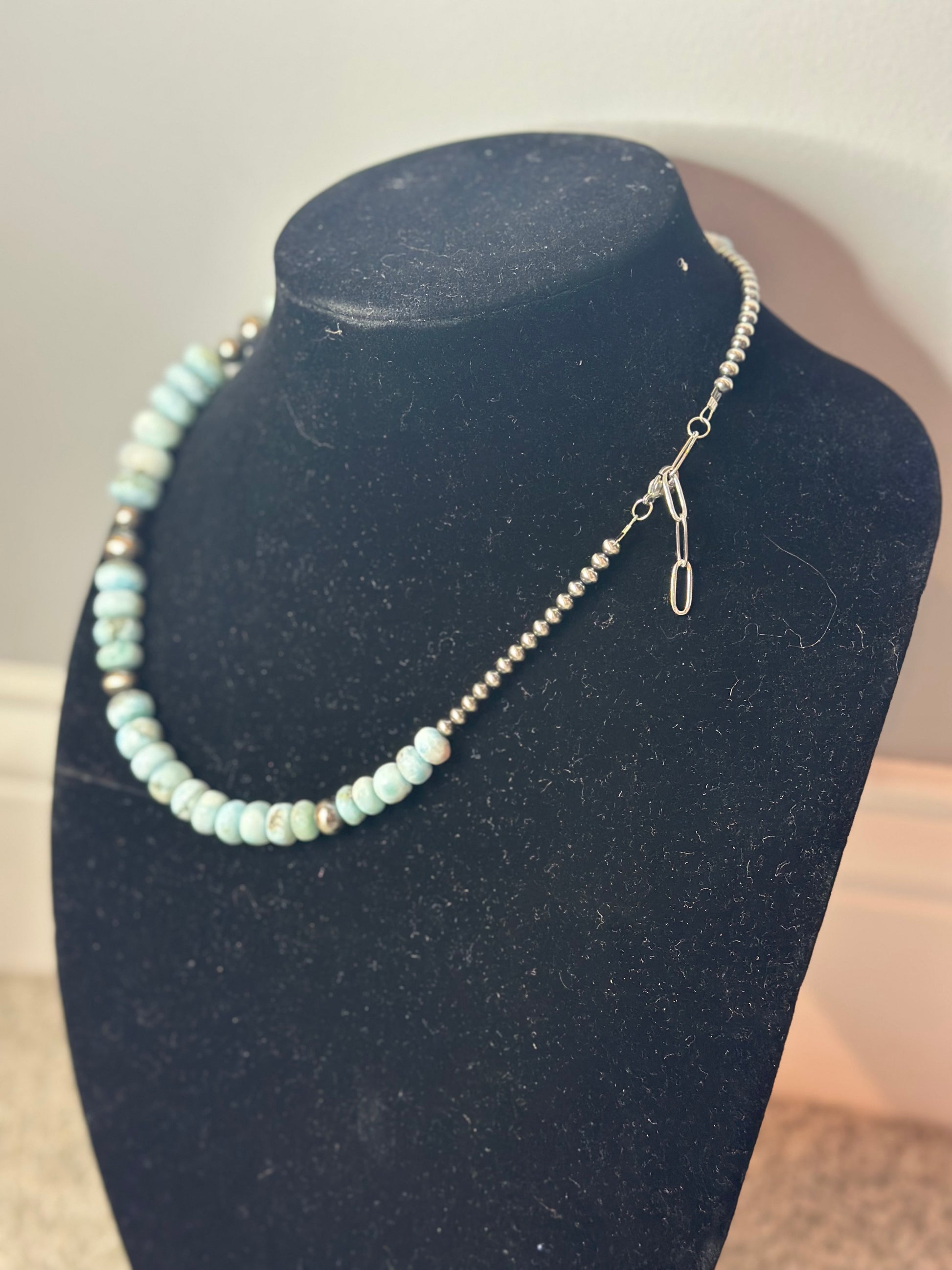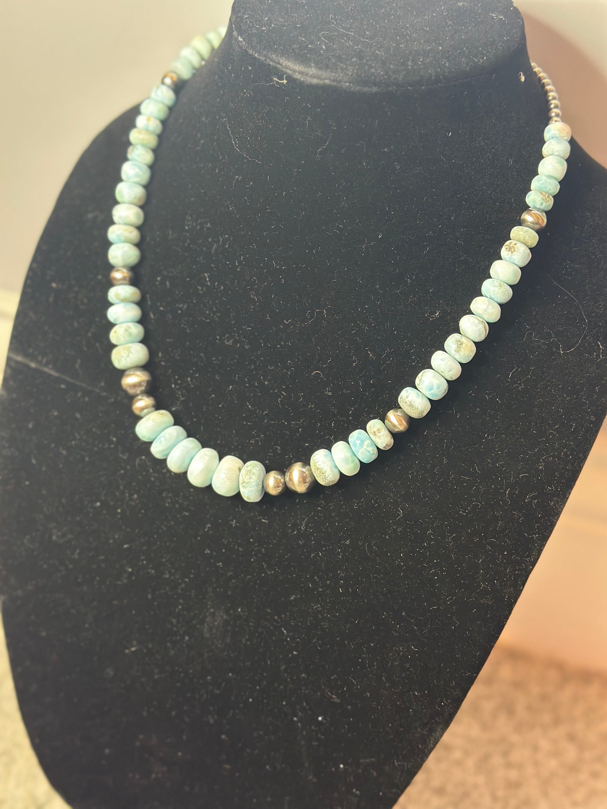these BEAUTIFUL graduated larimar paired with navajo sterling silver beads, perfect for a statement piece