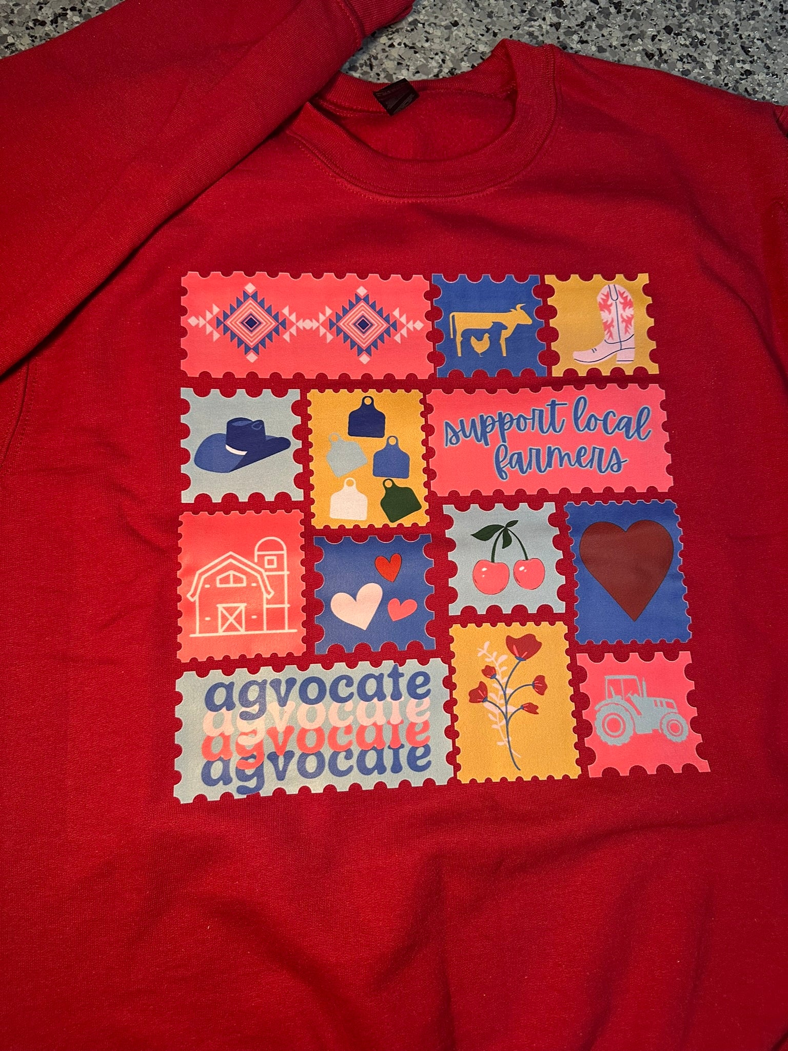 Agvocate stamp collage Burgundy Crewneck