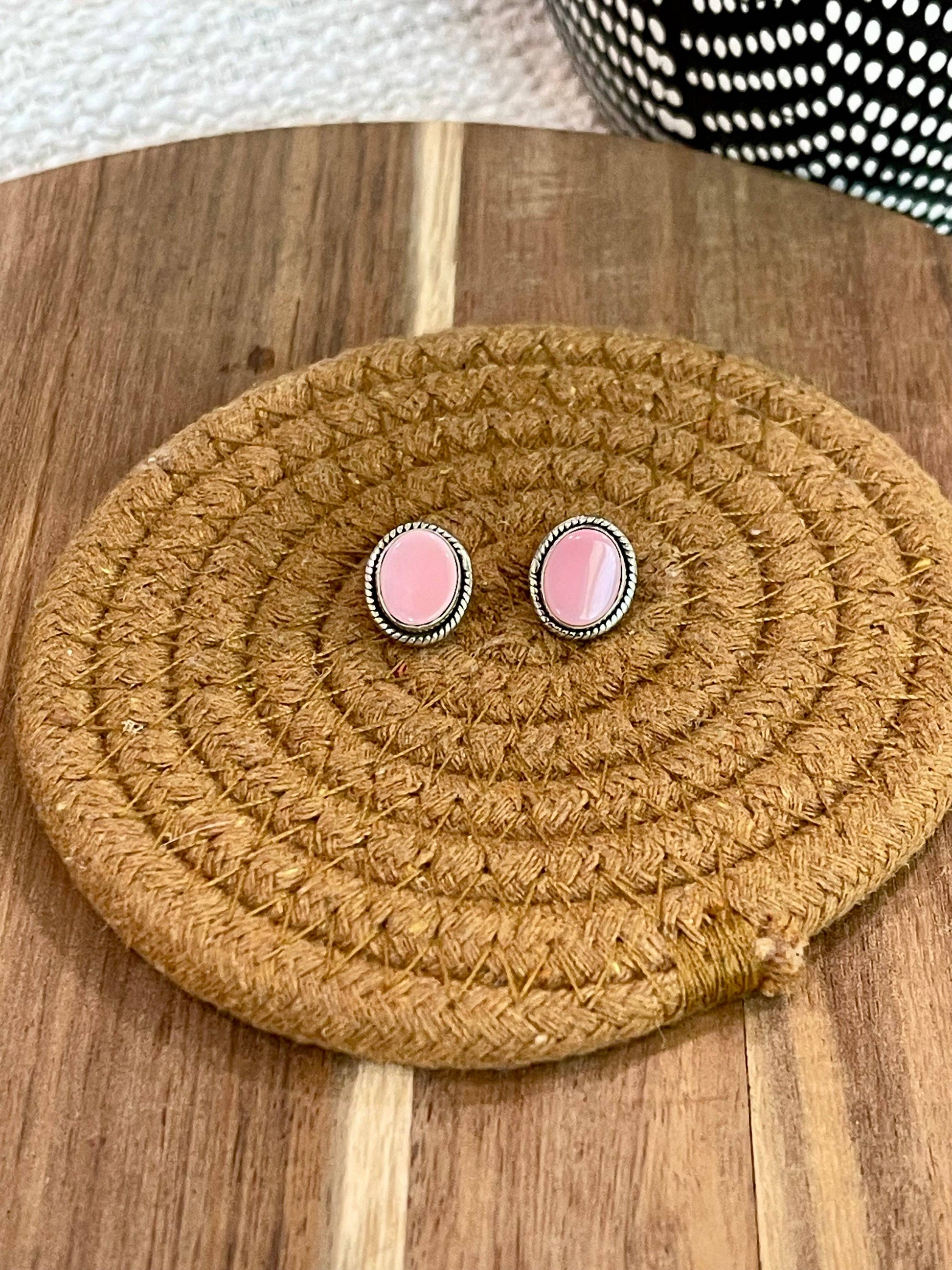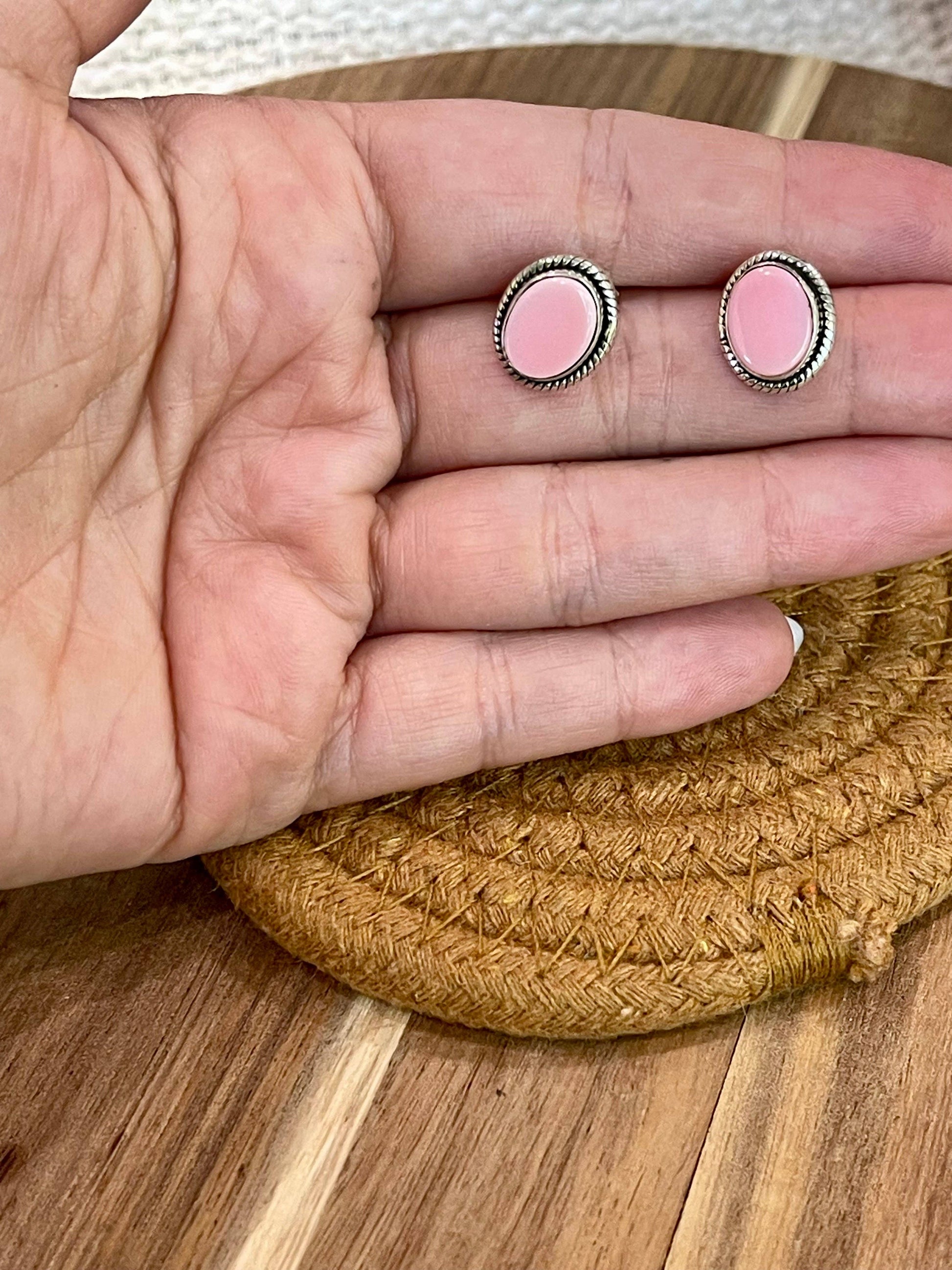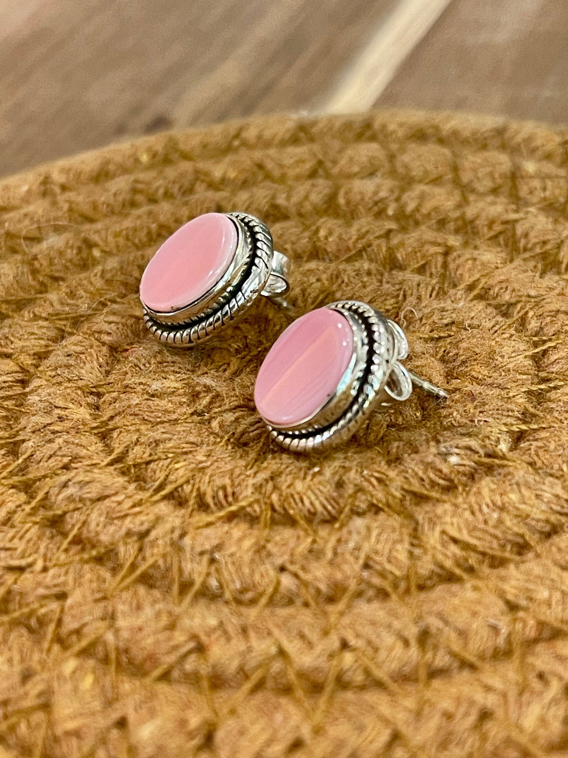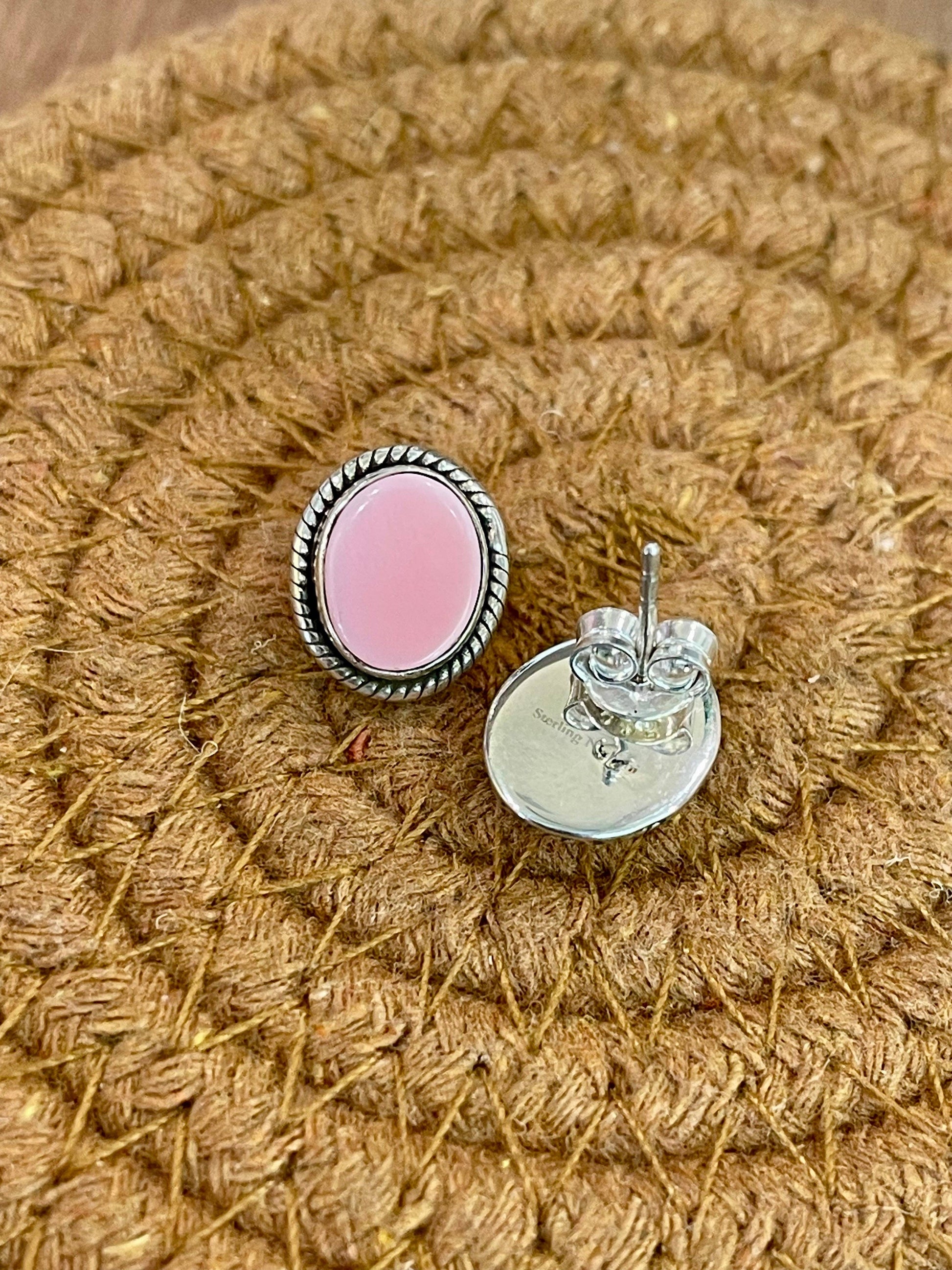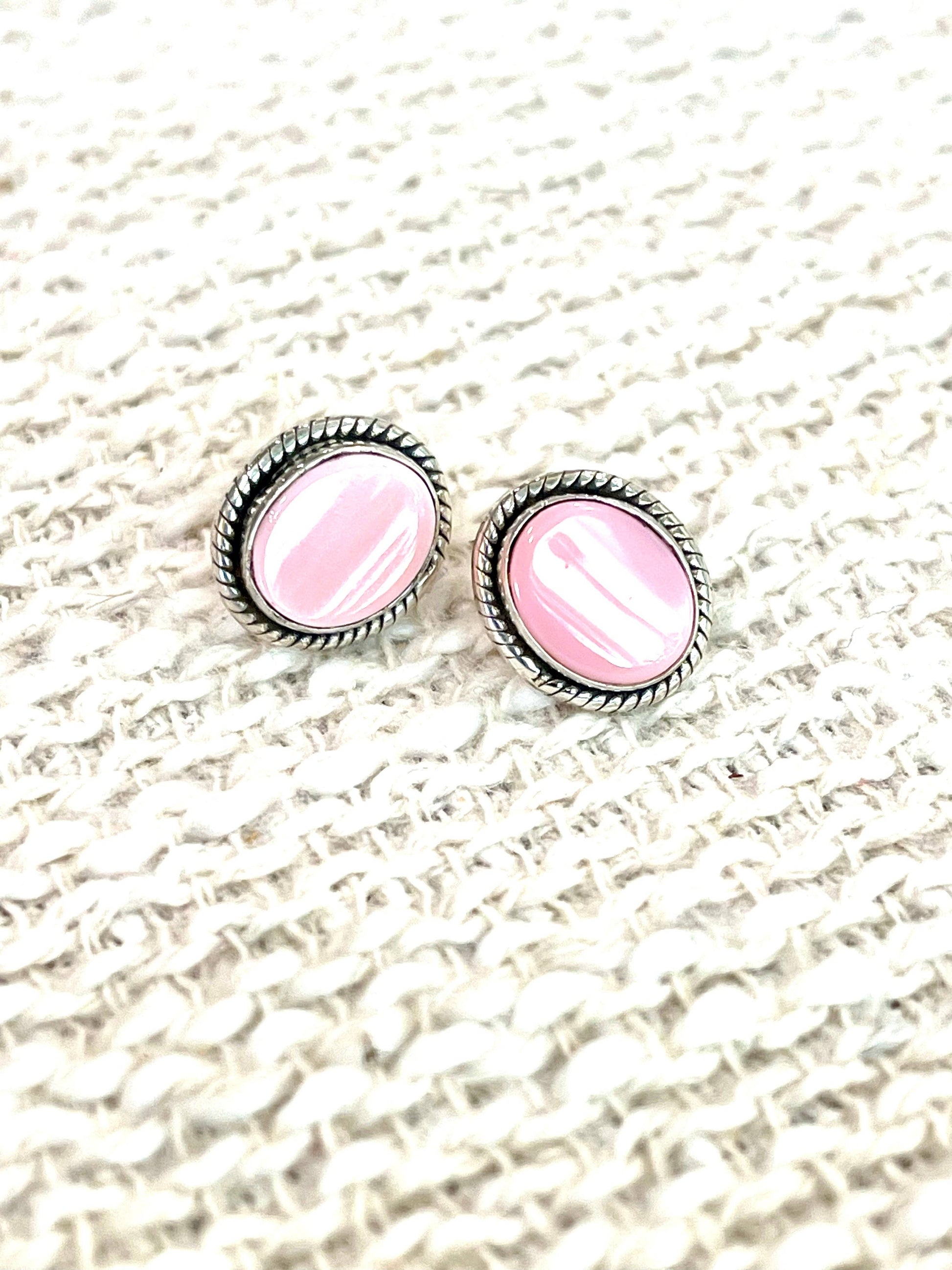 Beautiful Handmade Sterling Silver & Pink Conch Post Earrings