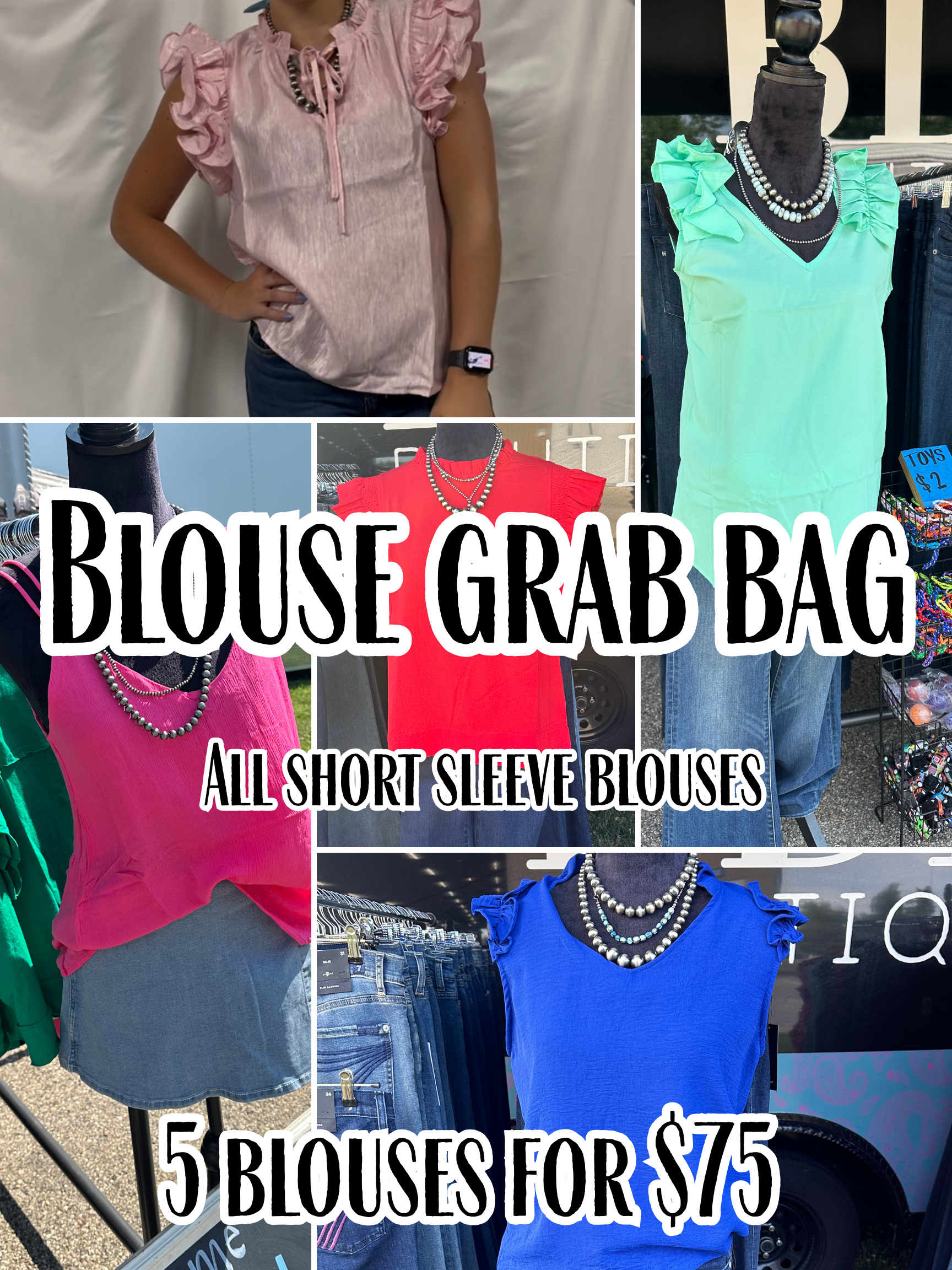 these mystery grab bags are VERY limited. You will receive 5 of the same size blouses for just $75