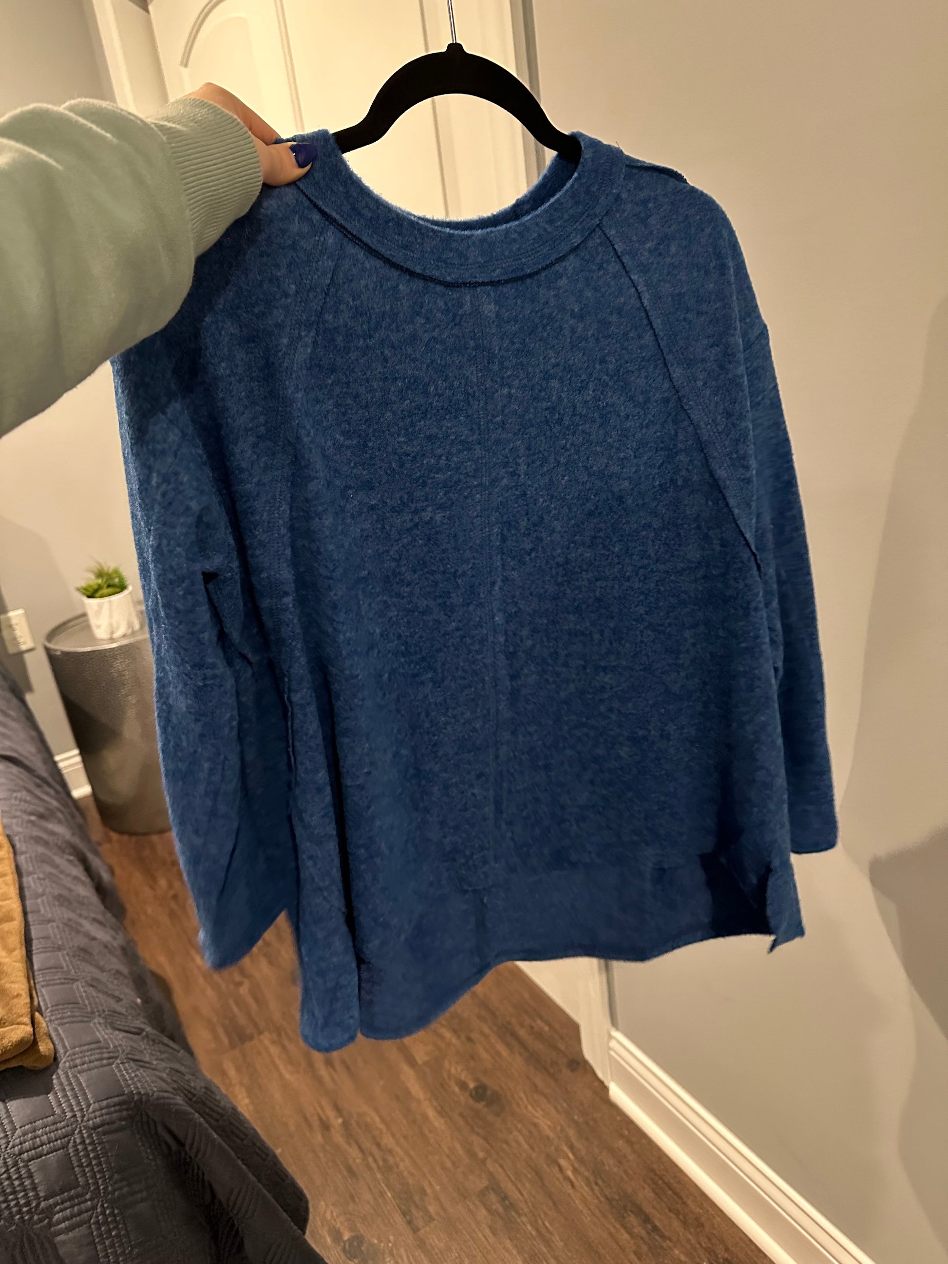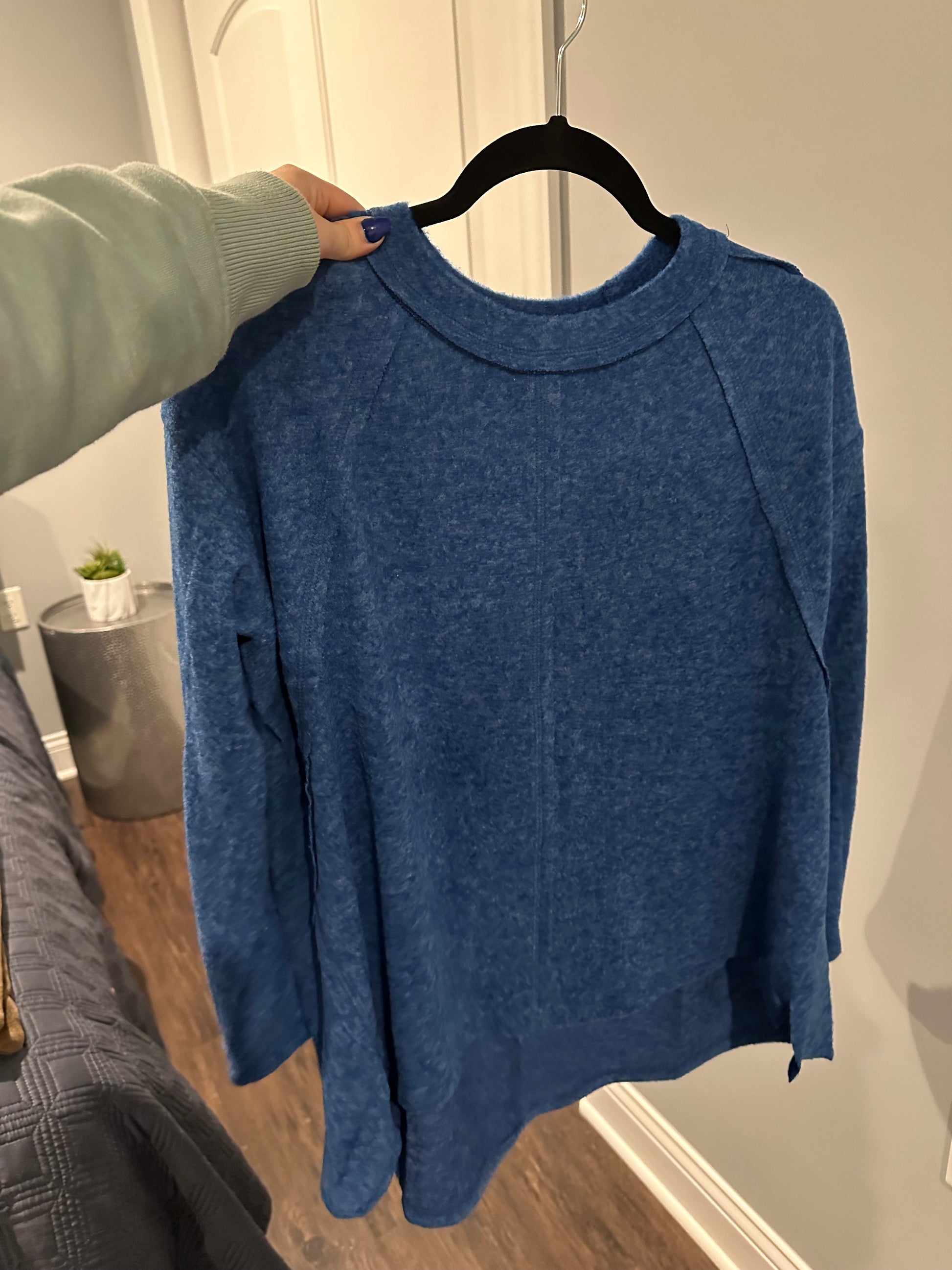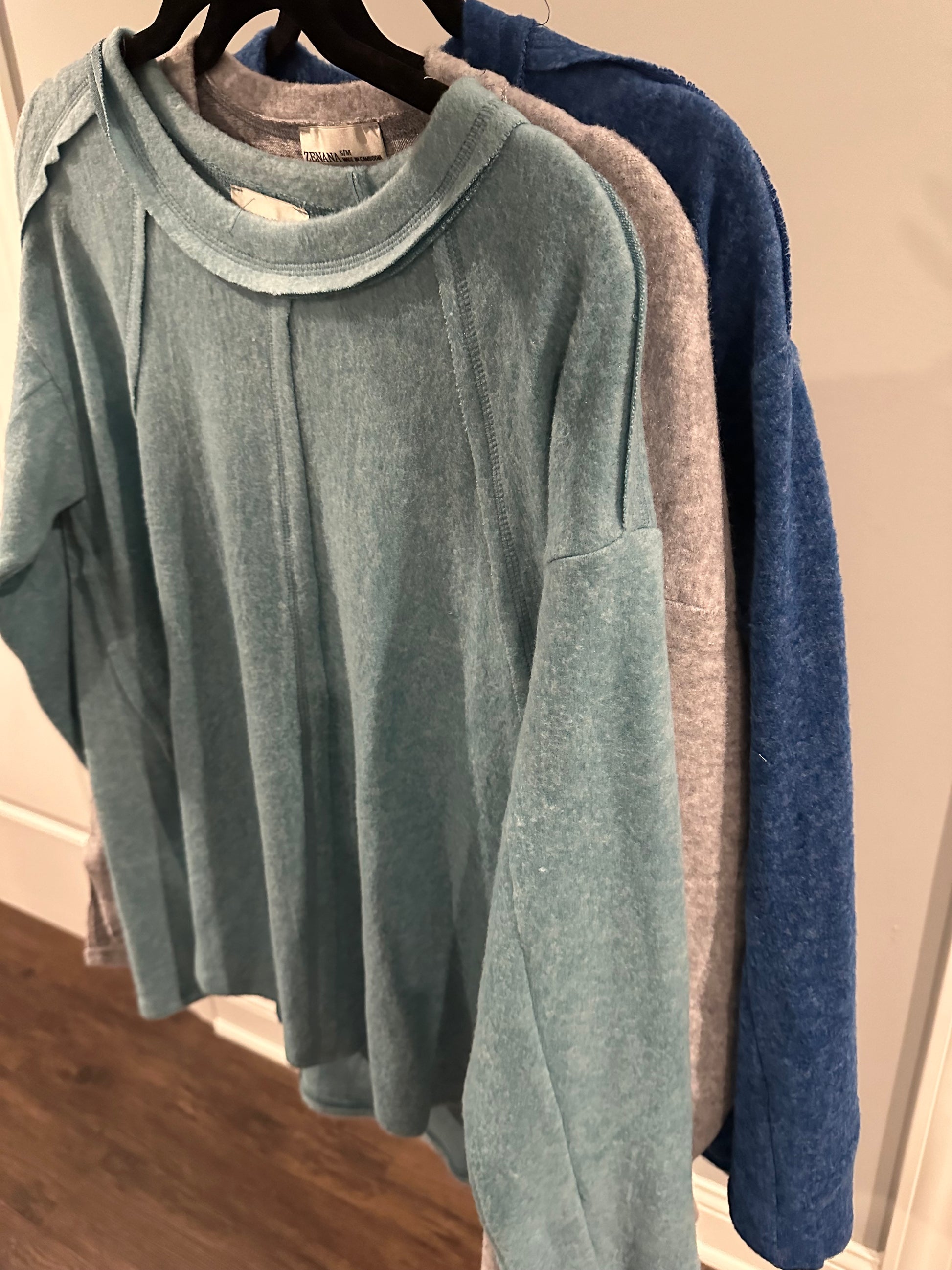 Brushed hacci exposed seam hi low sweater *3COLORS