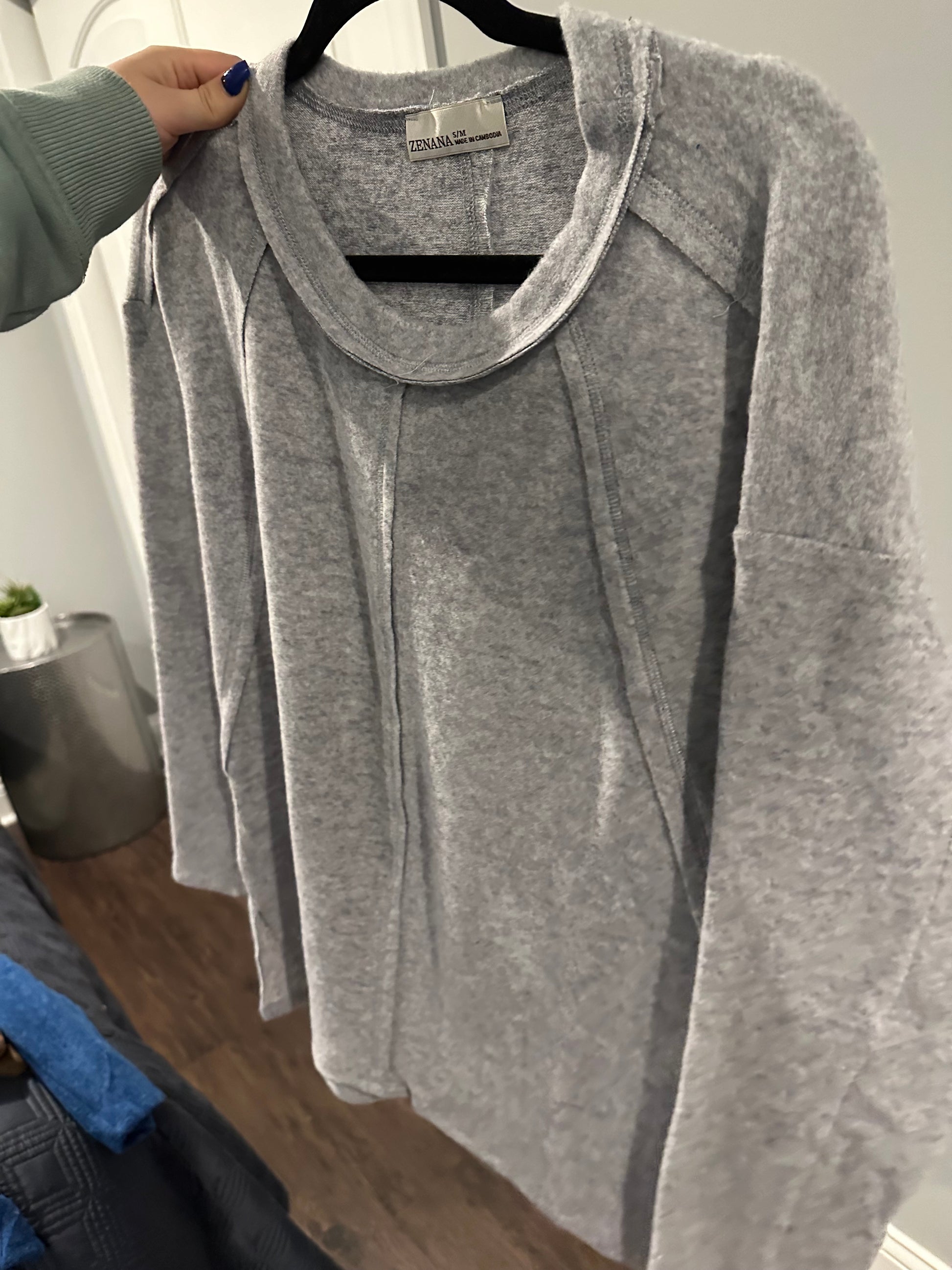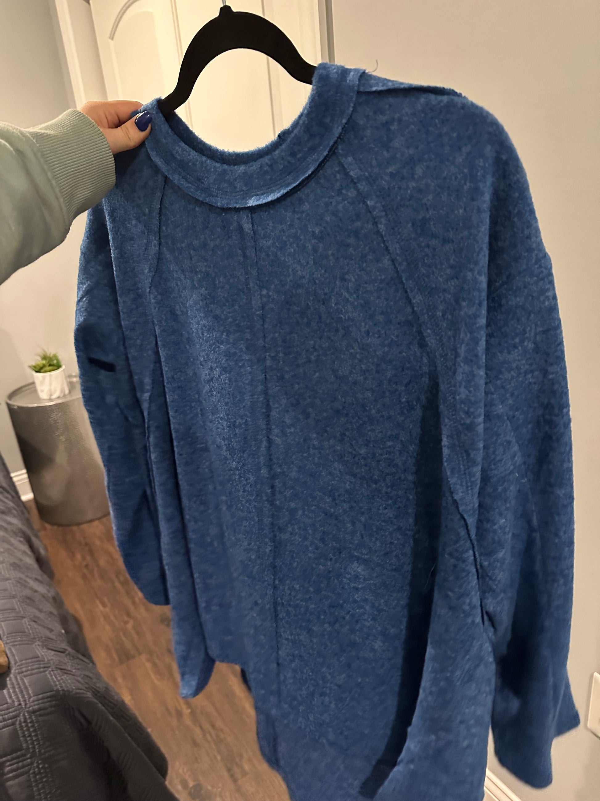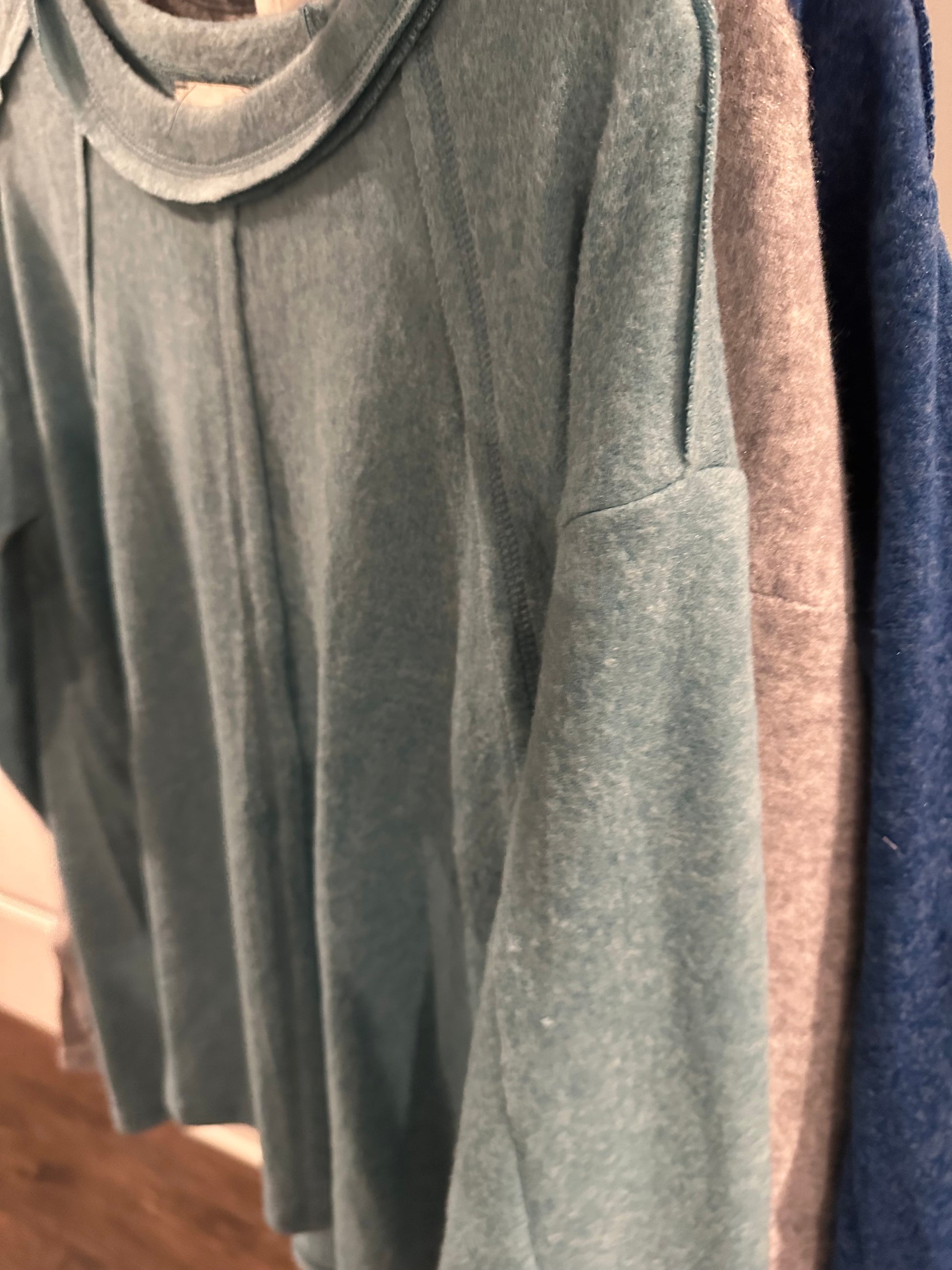Brushed hacci exposed seam hi low sweater *3COLORS