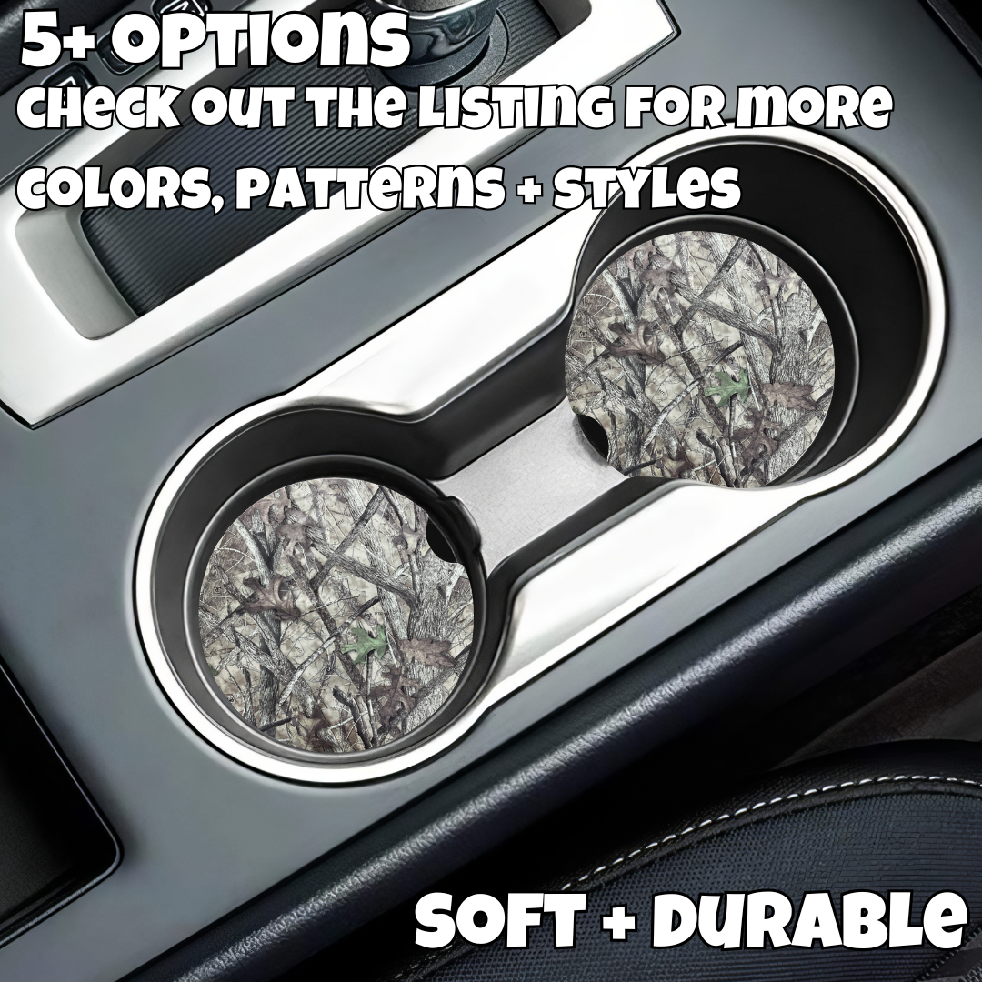 This set of two car coasters is an adorable accessory that can liven up your car's interior. They are designed to fit most standard-size cup holders and make it easier to clean. They have an anti-slip bottom, are soft and bendable, and are easy to remove with a thumb hole. Car coasters are cute car accessories that make unique gifts for your friends, mother, girlfriend, teacher, daughter, or even yourself.