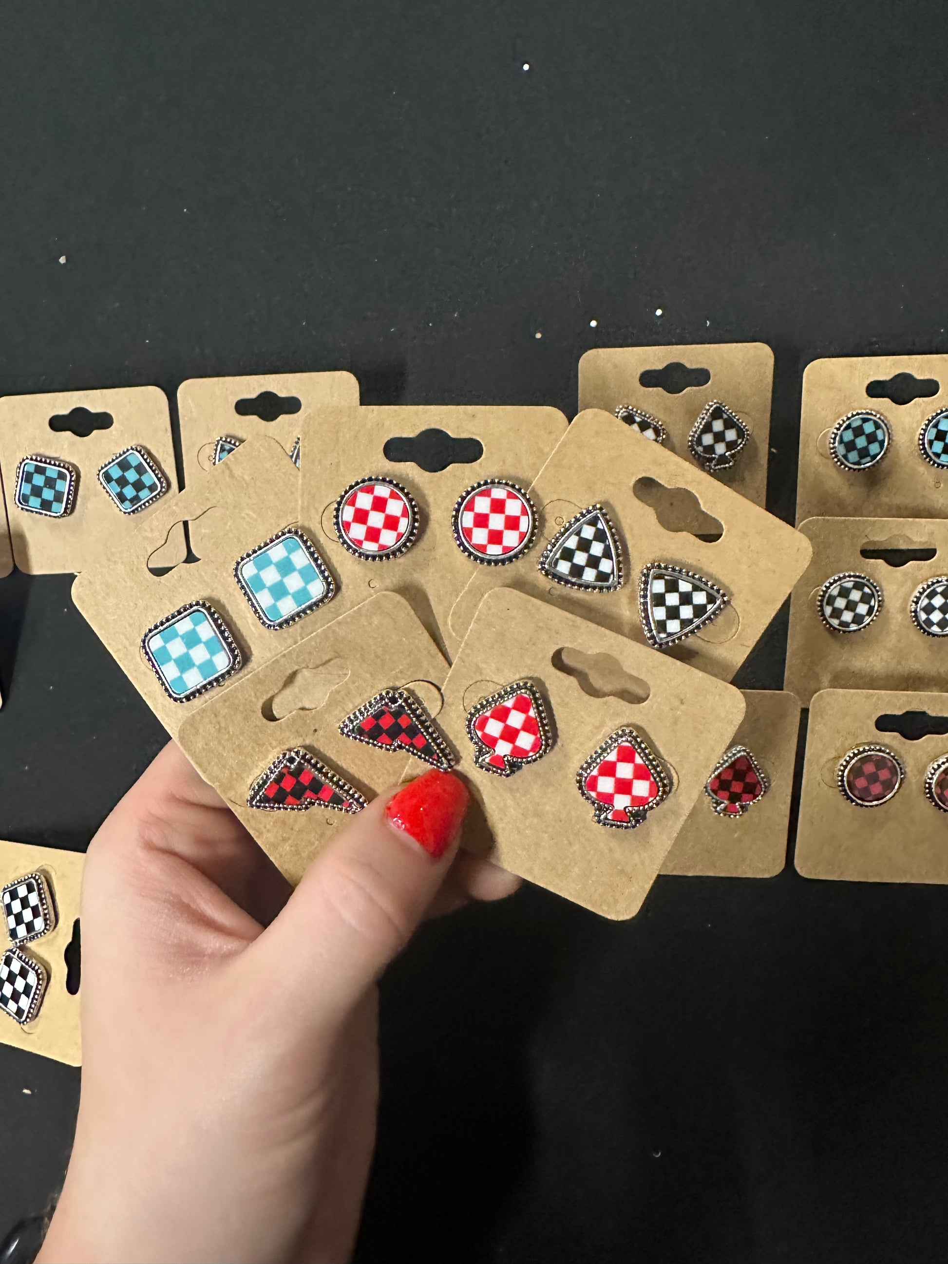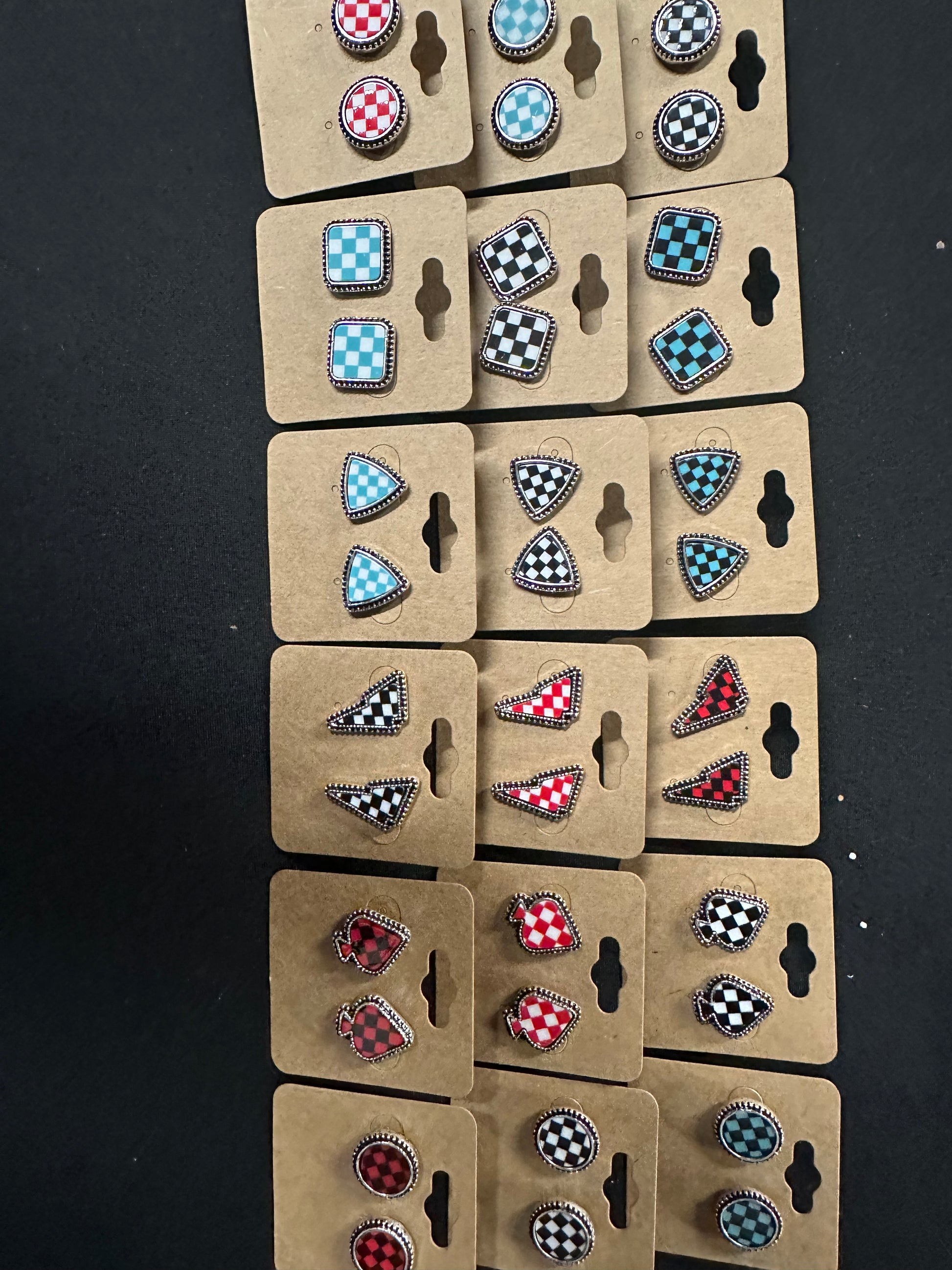Add a touch of western style to your outfit with our checker pattern western stud earrings. These earrings feature a unique western checker print design, perfect for any cowgirl or cowboy. Stand out from the crowd and make a statement with these stylish and trendy earrings.