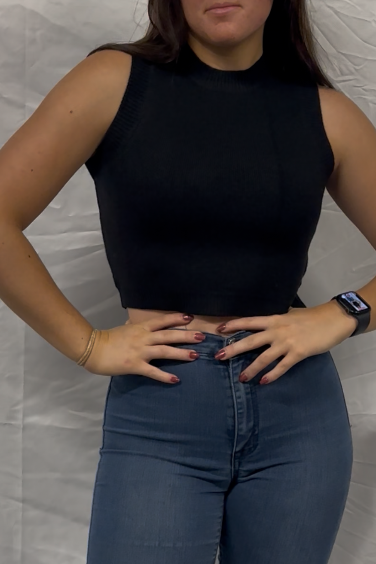 Elevate your layering game with this cropped sweater knit sleeveless top. Crafted from premium knit fabric, it delivers a refined silhouette that pairs seamlessly with everything from tailored trousers to casual denim. The sleeveless design offers versatility for year-round styling—wear it solo during warmer months or layer it over fitted tees and long-sleeve shirts for added dimension. The cropped length hits at the perfect spot to showcase high-waisted bottoms while maintaining a polished, intentional aesthetic. An essential piece for anyone seeking sophisticated basics with modern