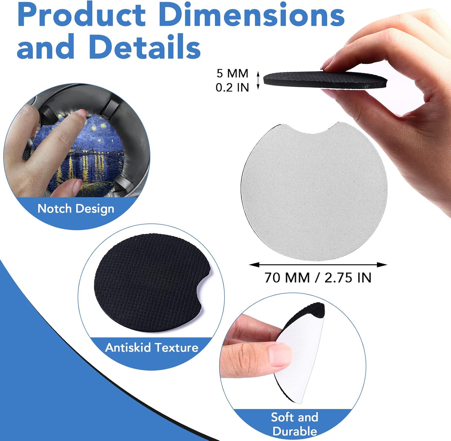 Material Neoprene, Design added with Sublimation Ink Shape Round Hand Wash Only Please keep in mind that the design on each Car Coaster is handcrafted and may vary slightly in placement. Additionally, it is important to note that the design is permanent. Please note that the color of the product may differ slightly from what you see on your screen due to differences in color settings on different screen monitors.