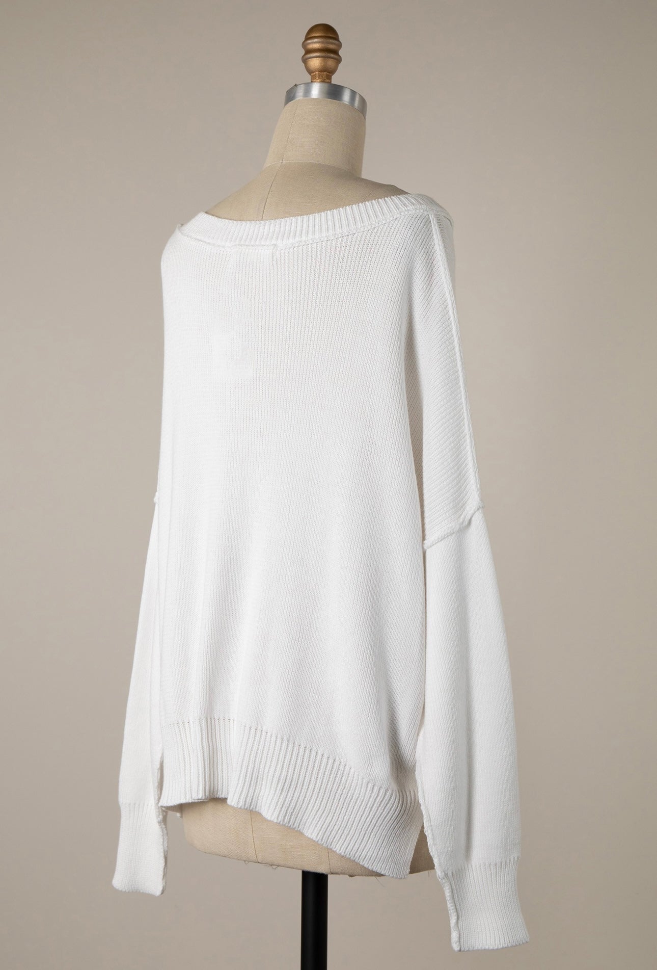 BOAT NECK FLAG CROCHET KNIT SWEATER DETAILS: RIBBED TRIM 100% COTTON - MADE IN CHINA