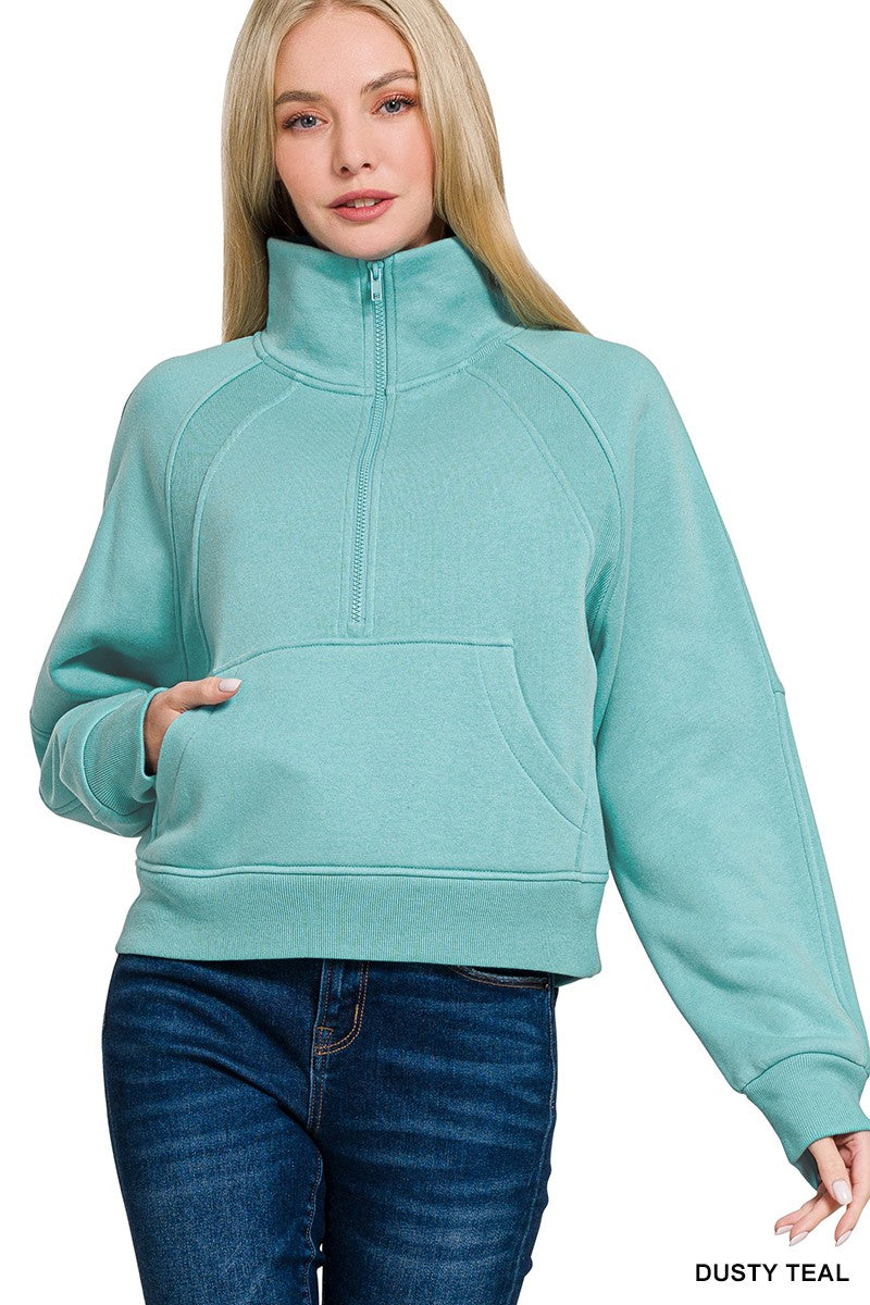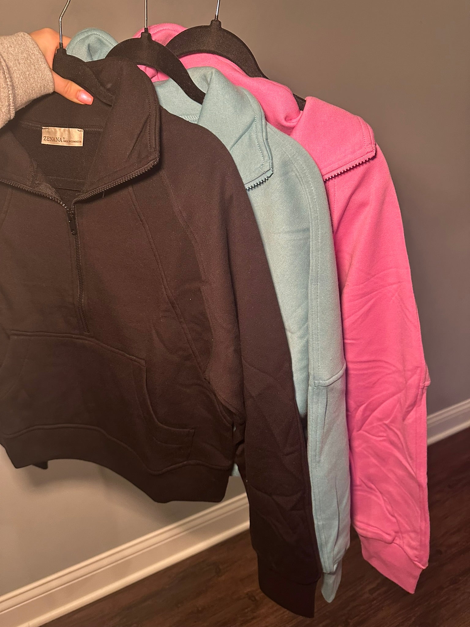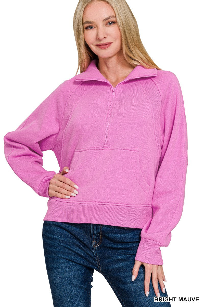 Fleece half zip kangaroo pocket sweatshirts *7 COLORS