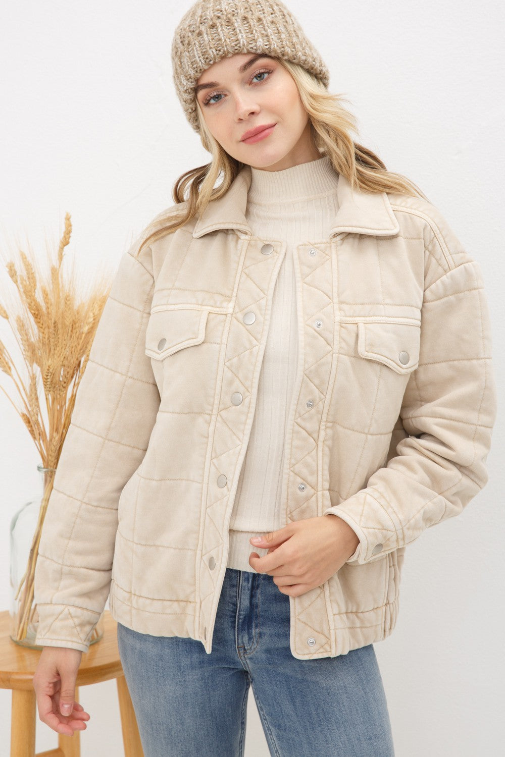 Garment Stone Washed Quilted Jacket *2COLORS
