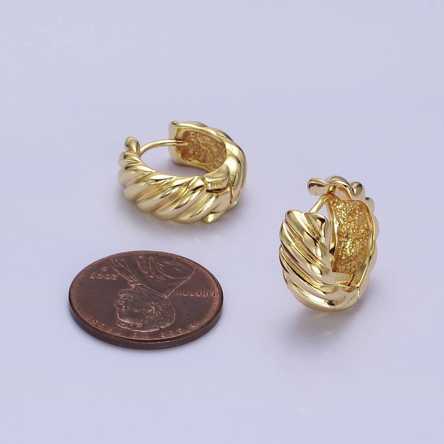 Gold Filled Wide Flat Lined Croissant 16mm Huggie Earrings
