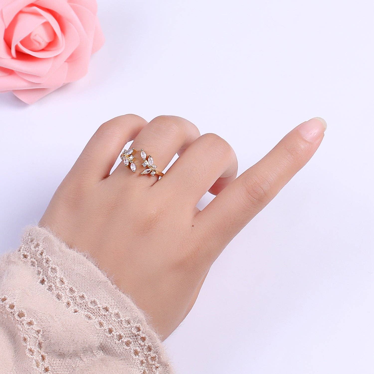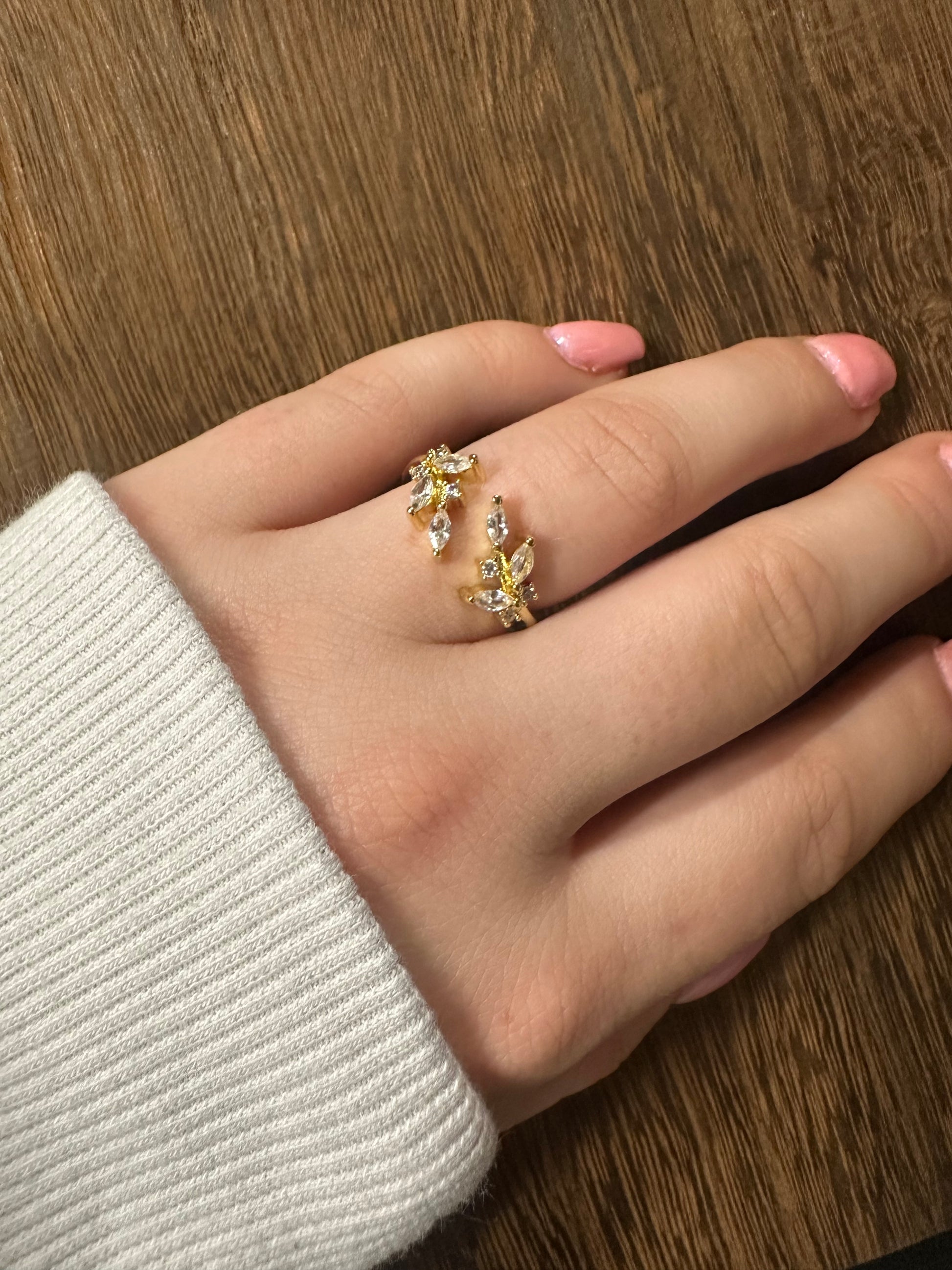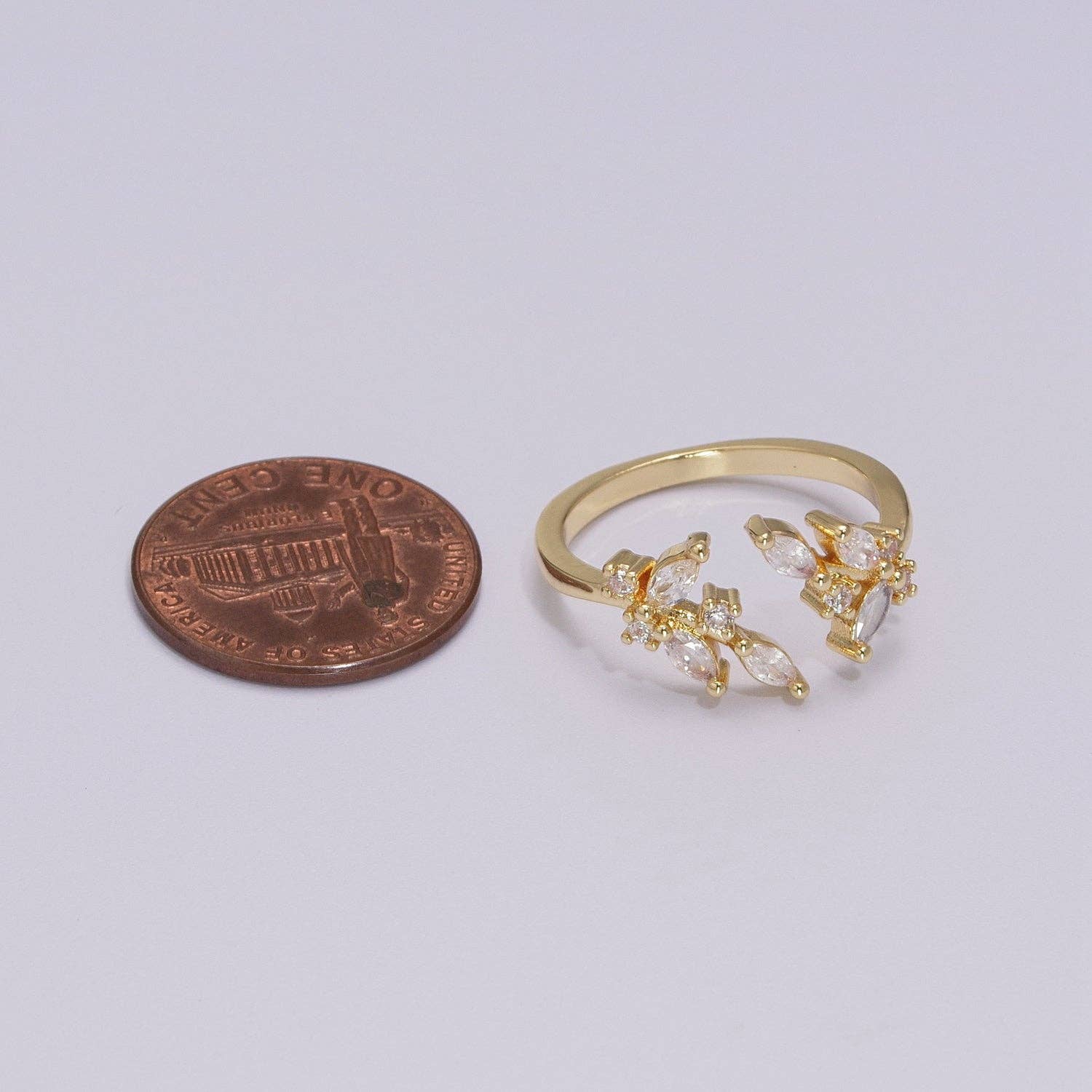 Gold Marquise Ring, Cz Open Adjustable Stacking Rings, Curved Ring, Birthday Gift for Her, Anniversary Gift, Crown Gold Ring Open Ring U028