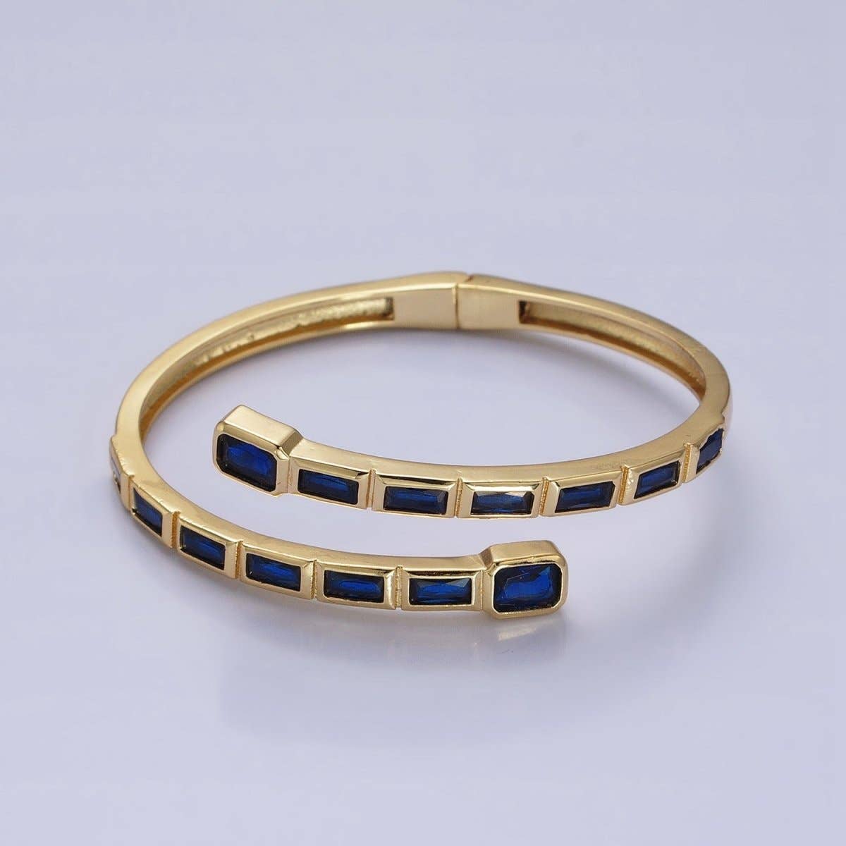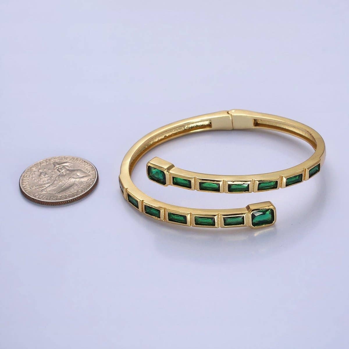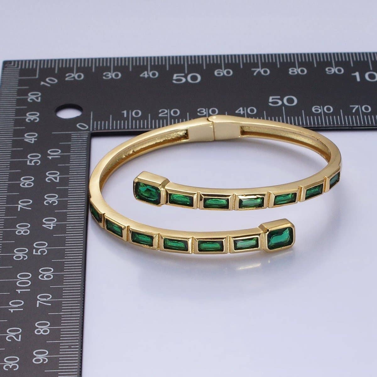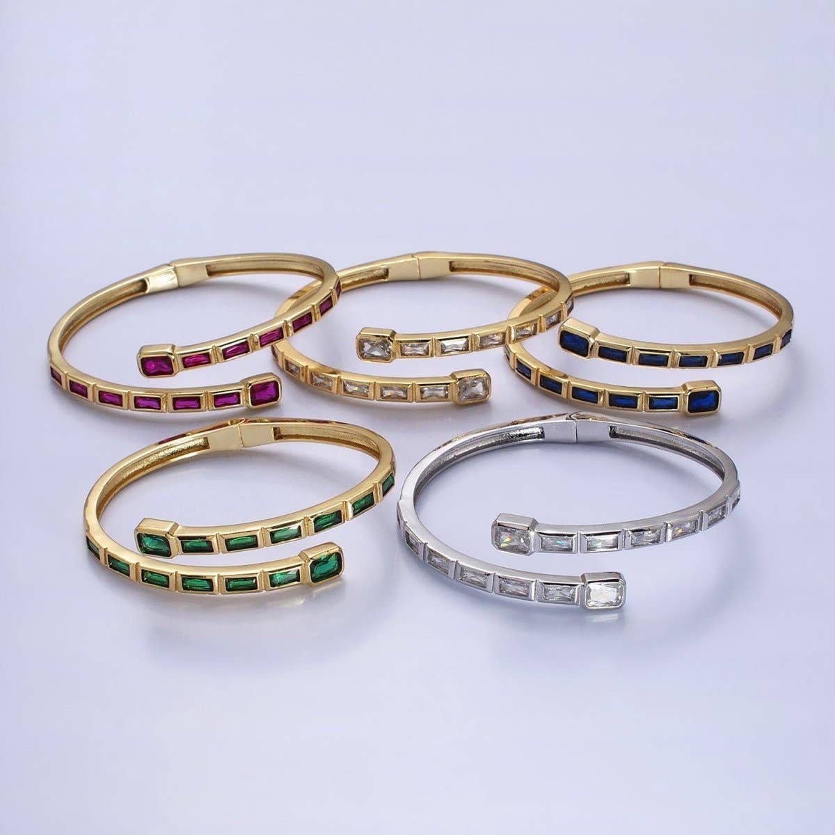 Gold Wrist Bangle Emerald Cut Cz Bangle Bracelet Silver Bracelet Blue Sapphire, Emerald Green, Clear CZ | WA-1687 to WA-1691 Clearance Pricing