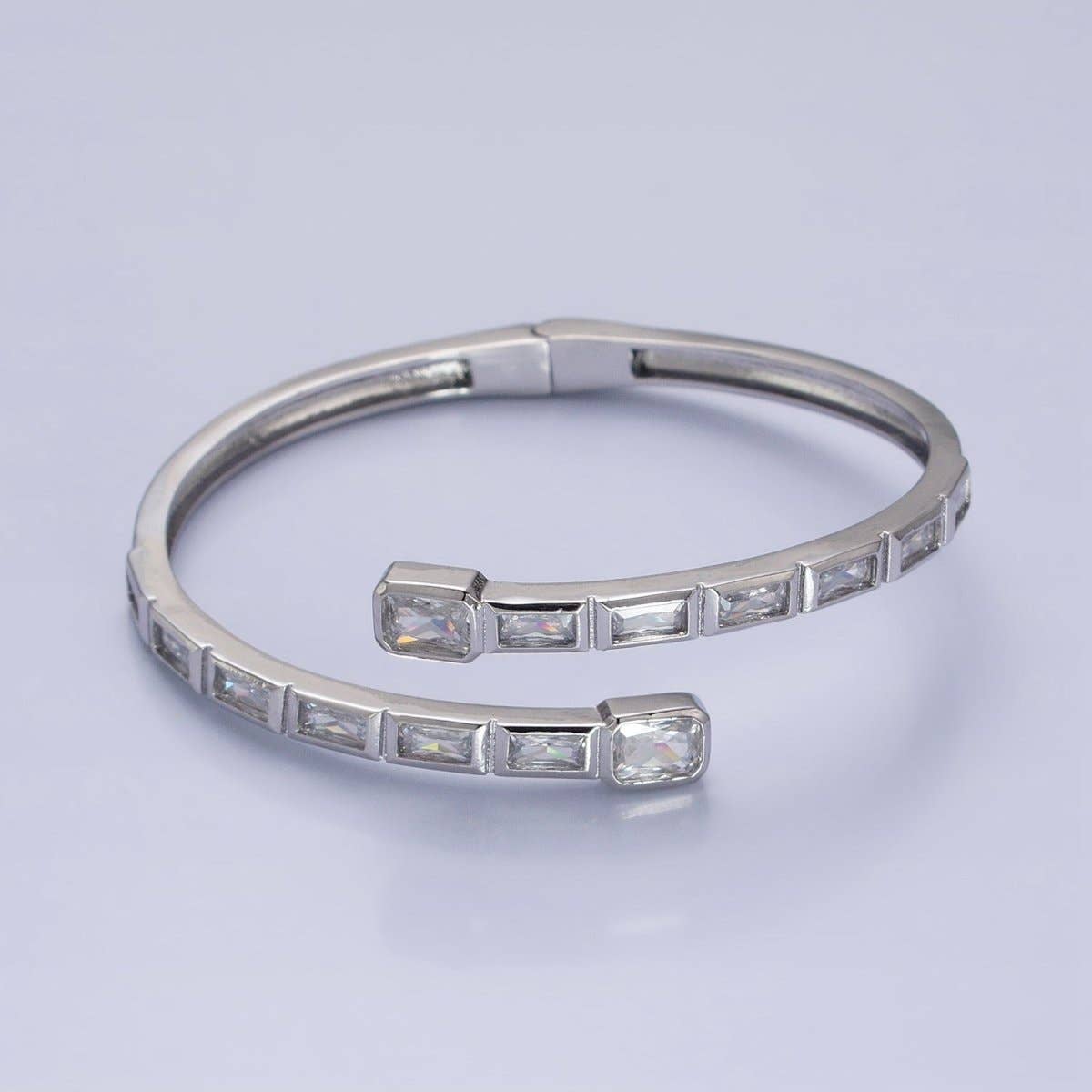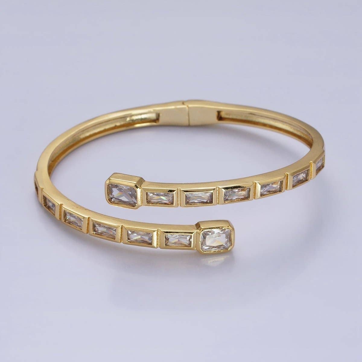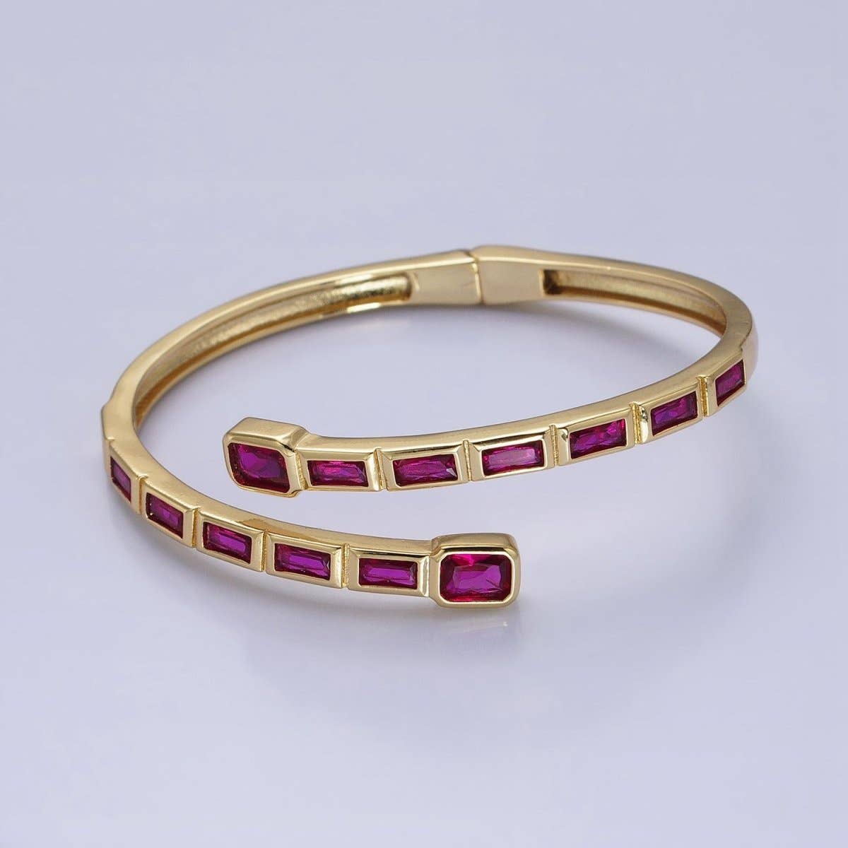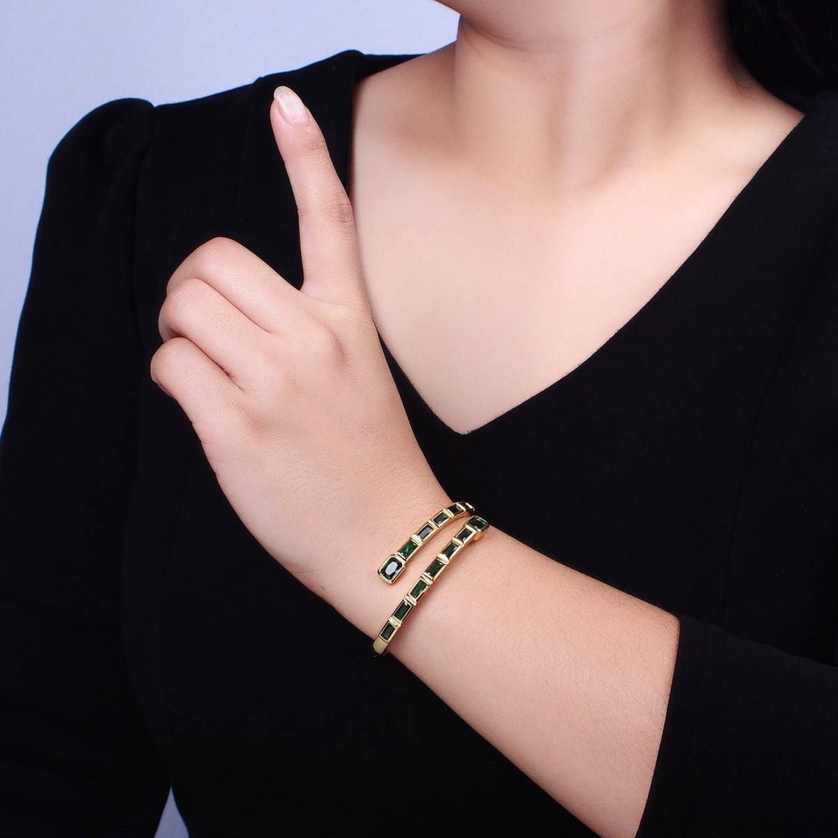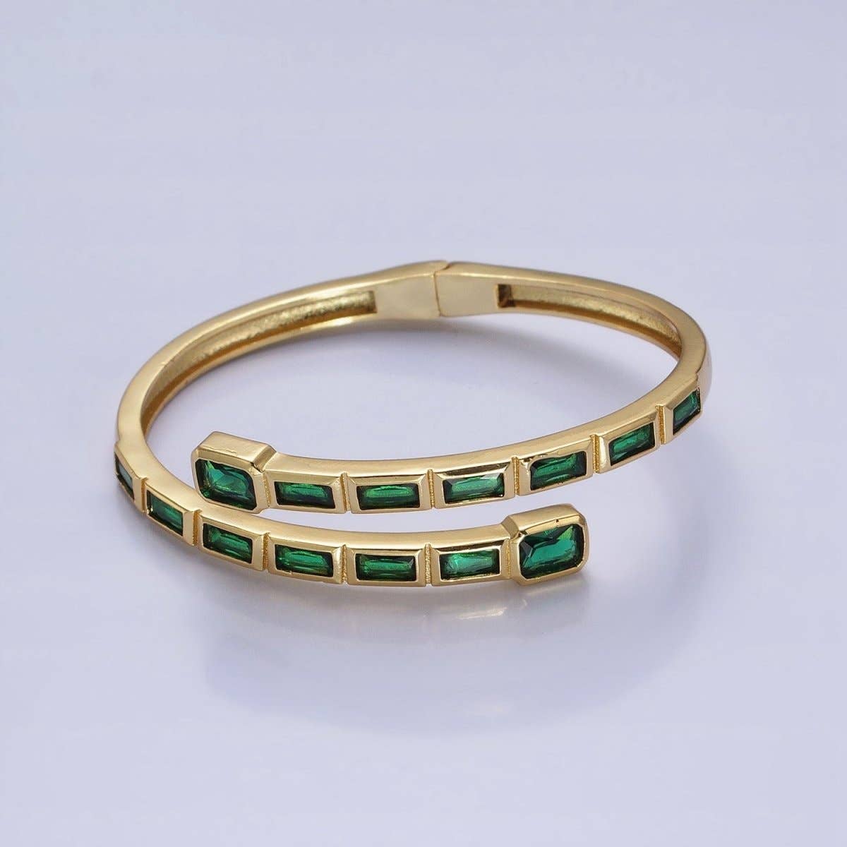 Gold Wrist Bangle Emerald Cut Cz Bangle Bracelet Silver Bracelet Blue Sapphire, Emerald Green, Clear CZ | WA-1687 to WA-1691 Clearance Pricing