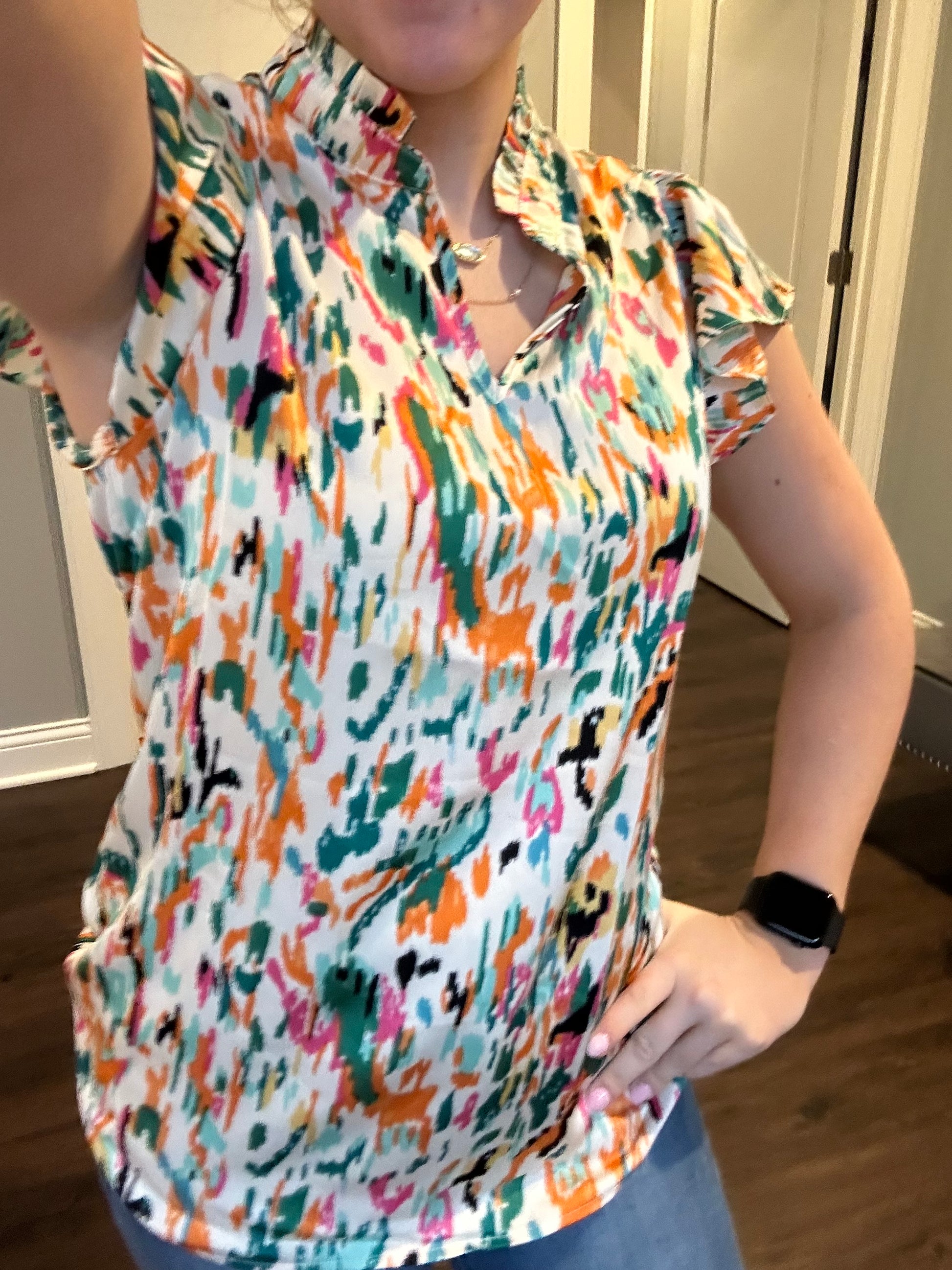 - This abstract print blouse adds visual interest and a touch of personality to your outfit
