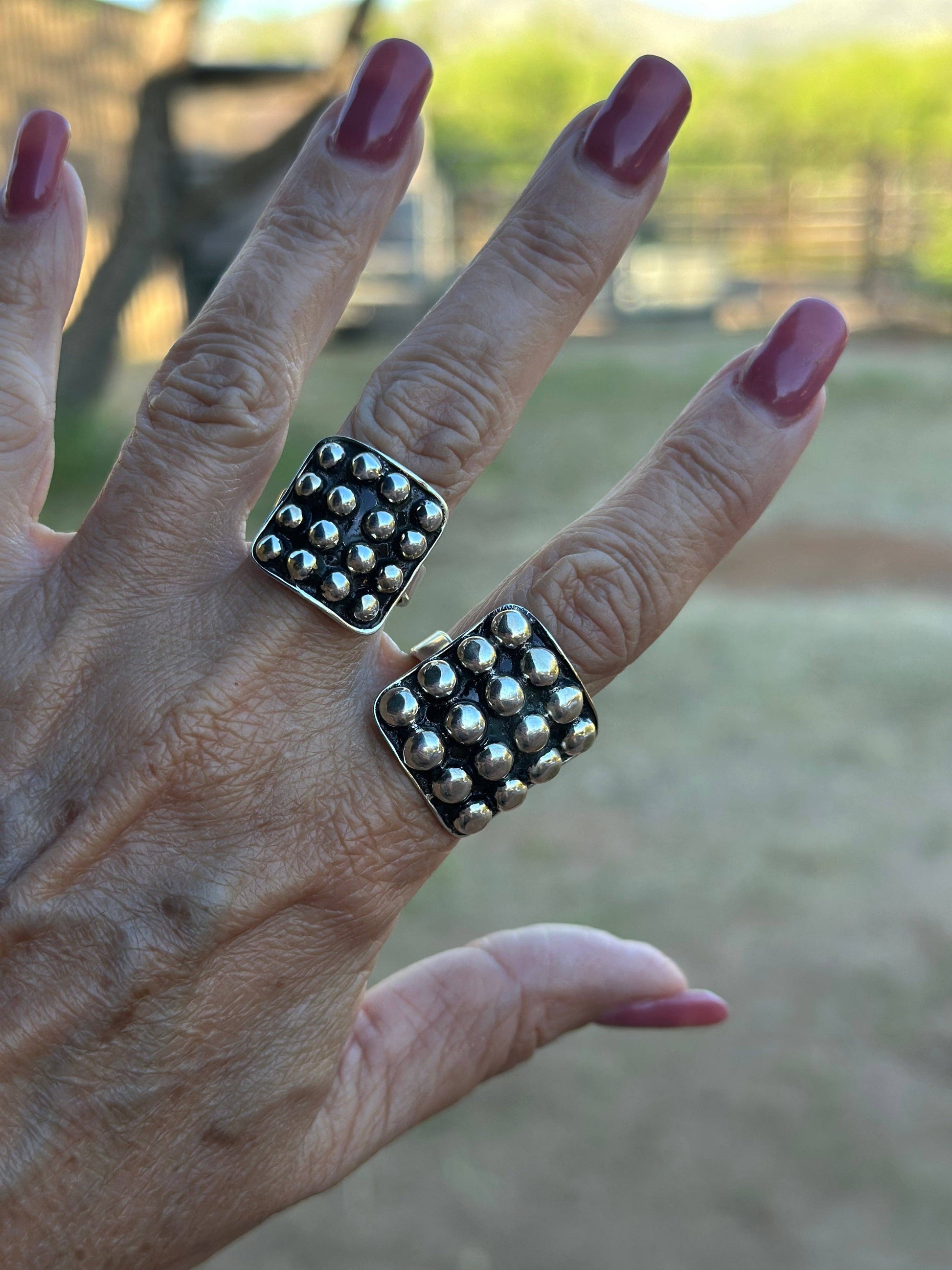 Piece is right at 1 inch wide with 4mm beading, stamped Sterling and Signed. Listing is for ONE ring, others shown for variety available.