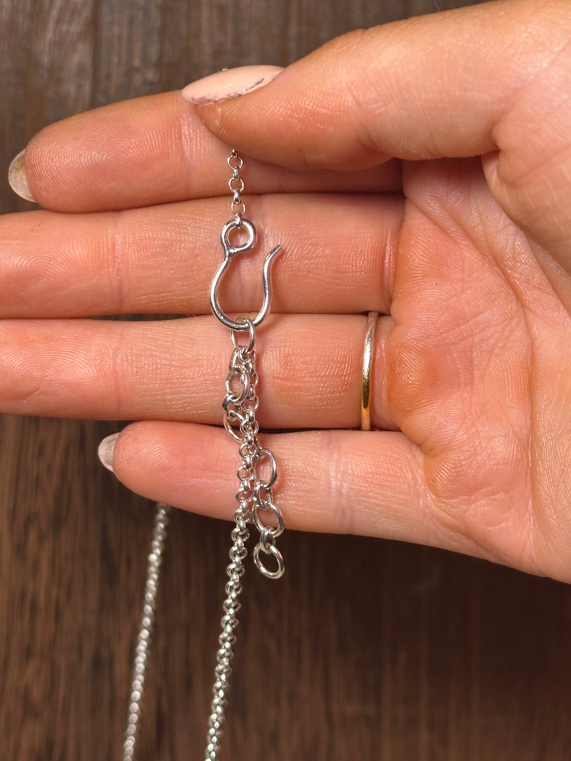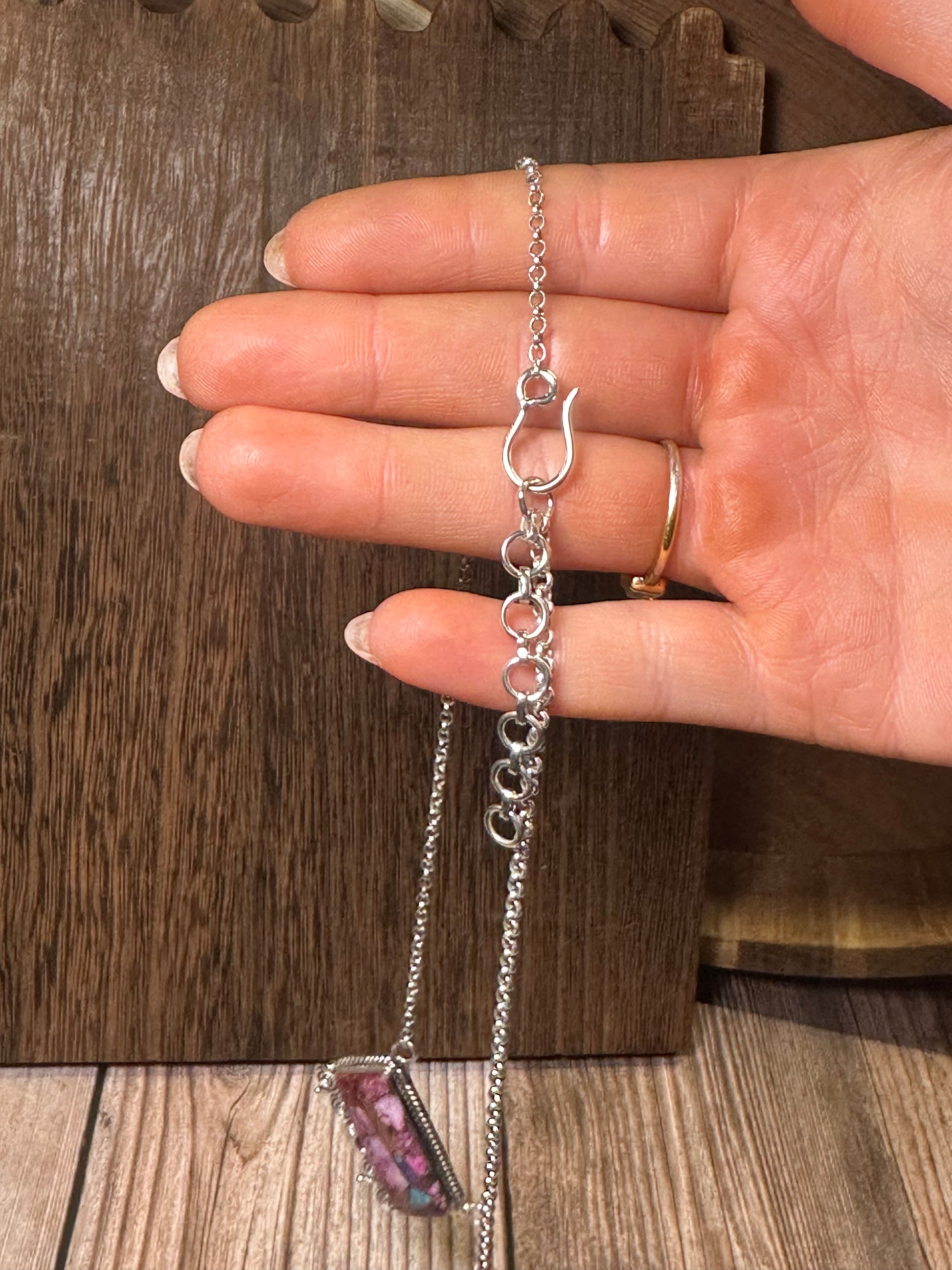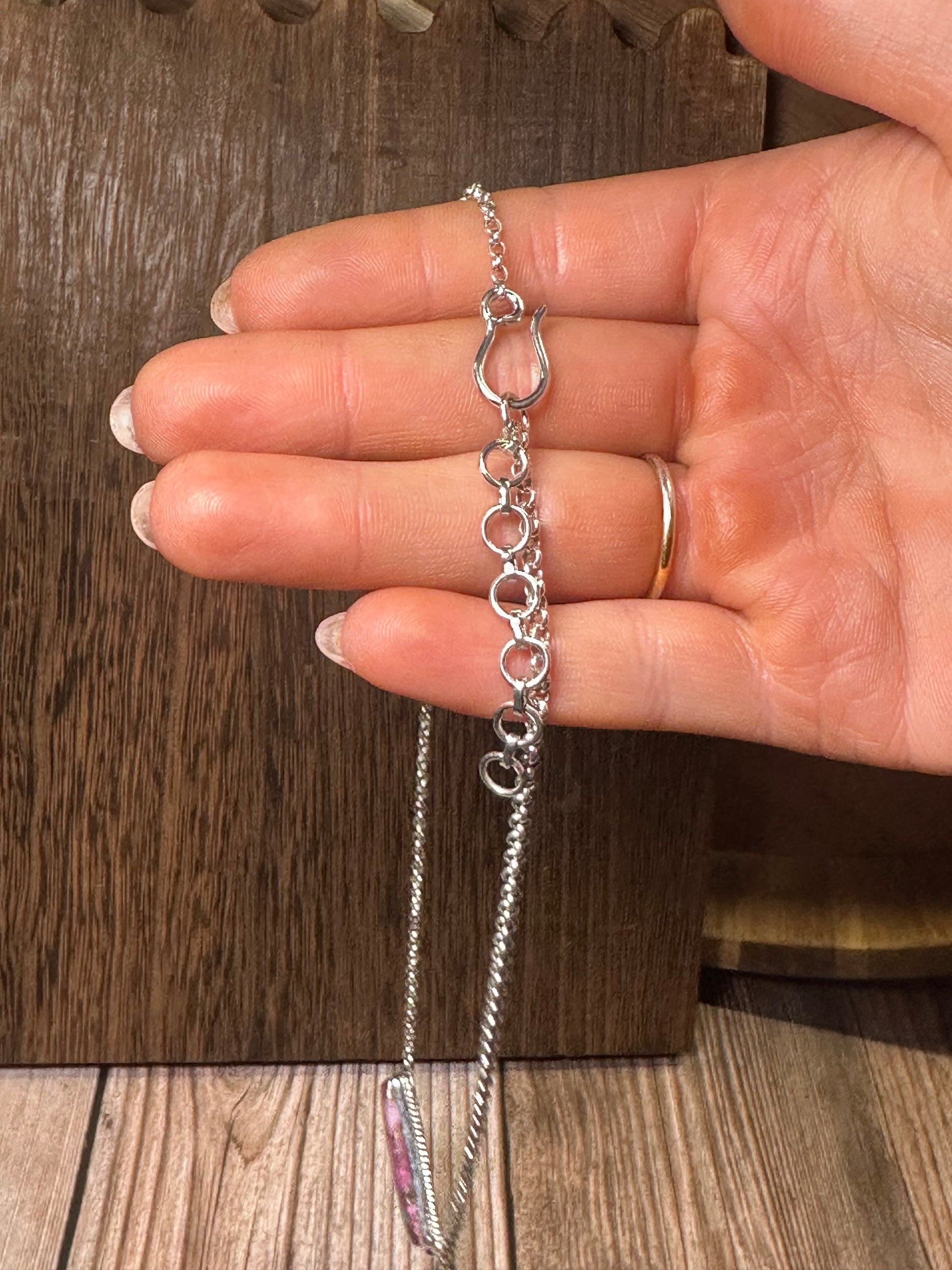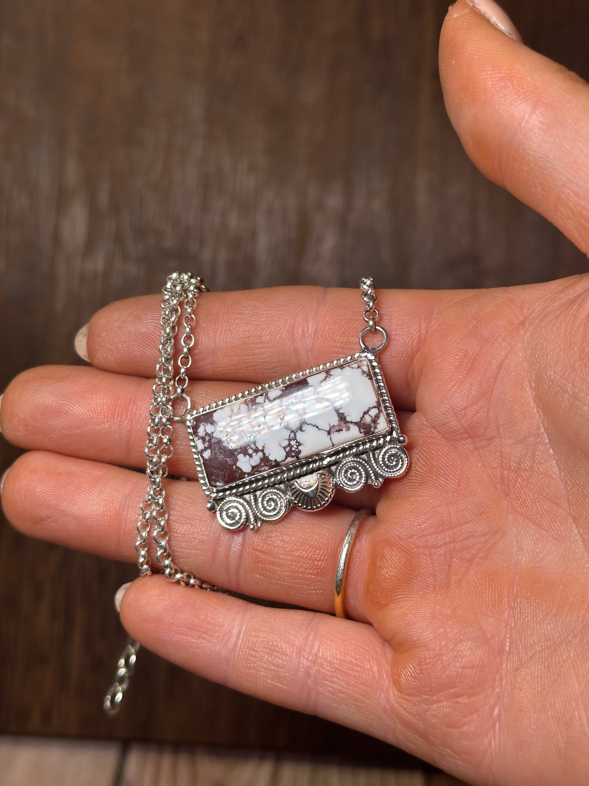 Beautiful Handmade Sterling Silver Bar Necklace. Such gorgeous craftsmanship! Sterling chain measures 16 inches long with a 2 inch extender. Pendant measures 1 inch long and 5/8 of an inch wide. Signed Nizhoni and stamped Sterling. Stones are natural and will vary.