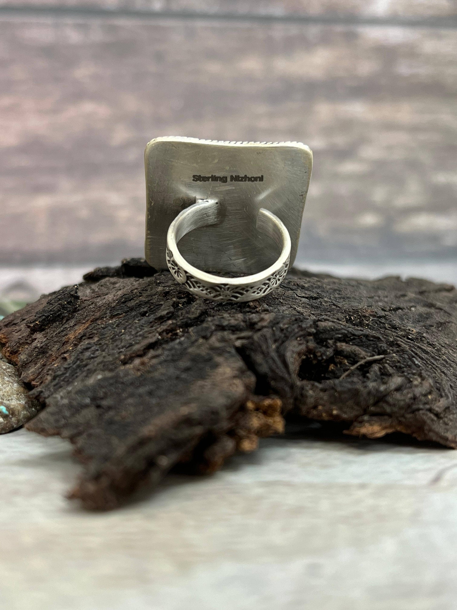 Handmade Sterling Silver Cotton Candy Turquoise Adjustable Ring with Signed Nizhoni