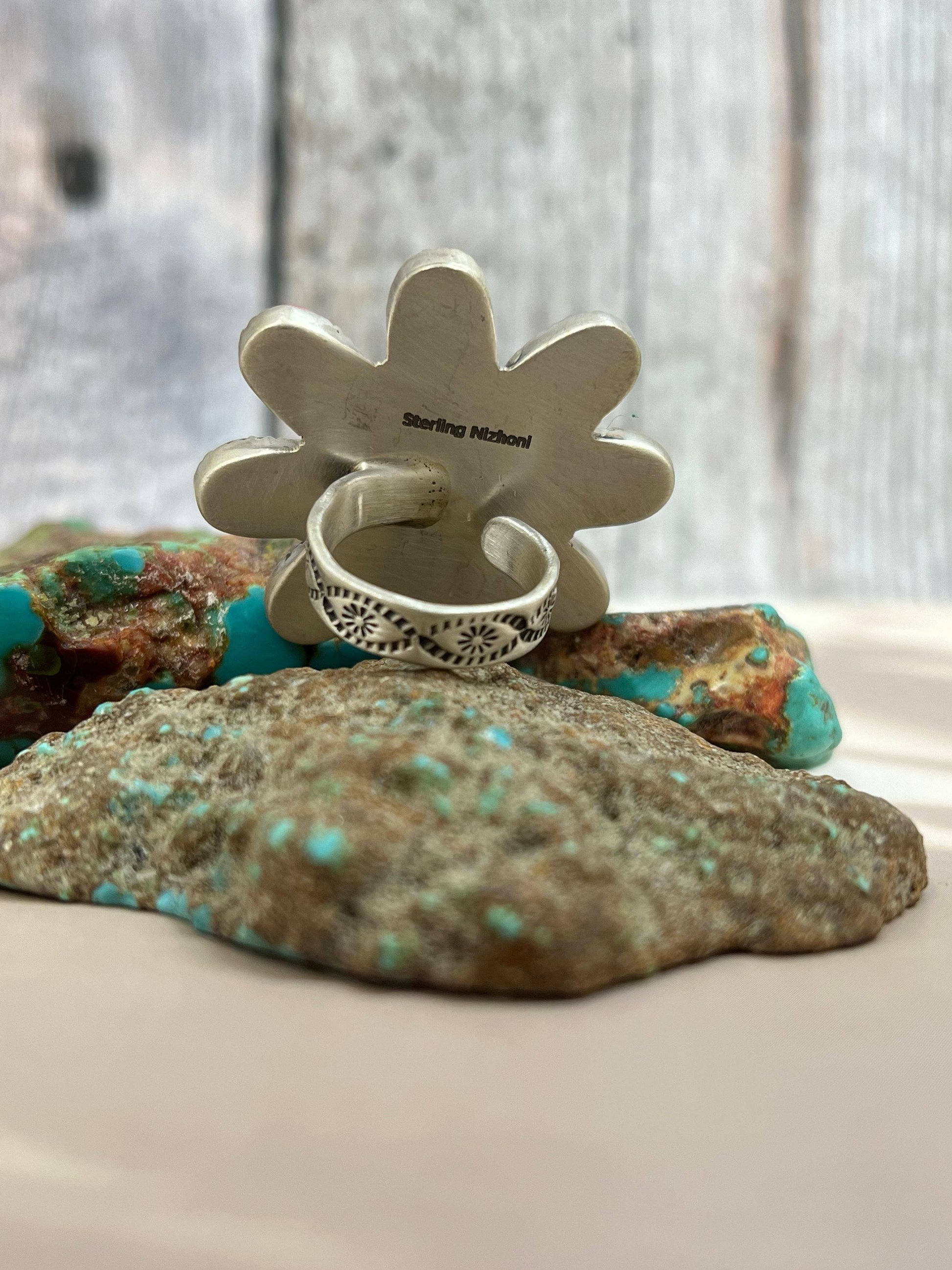 Handmade Sterling Silver Dahlia Rose Adjustable Ring with Signed Nizhoni