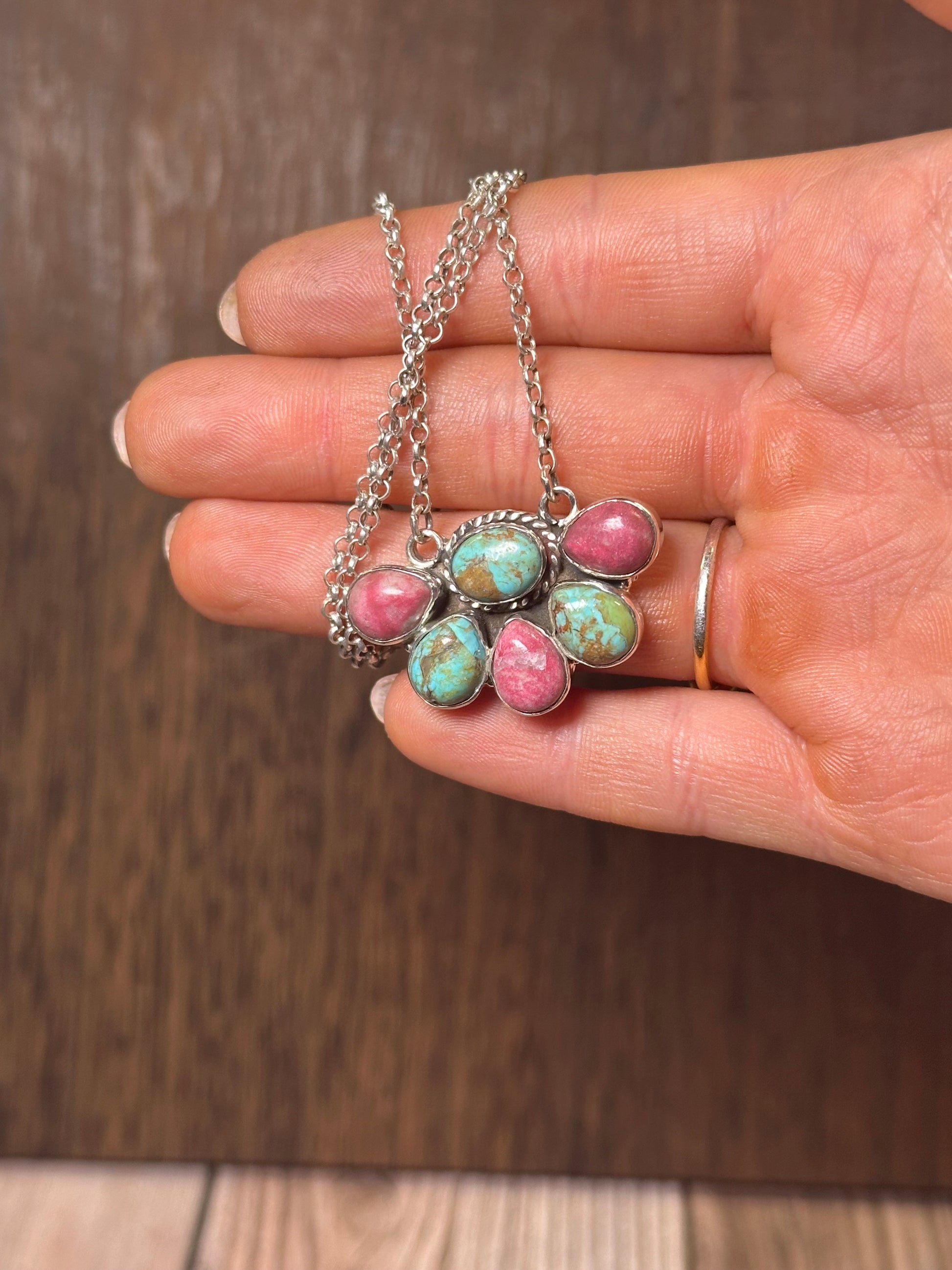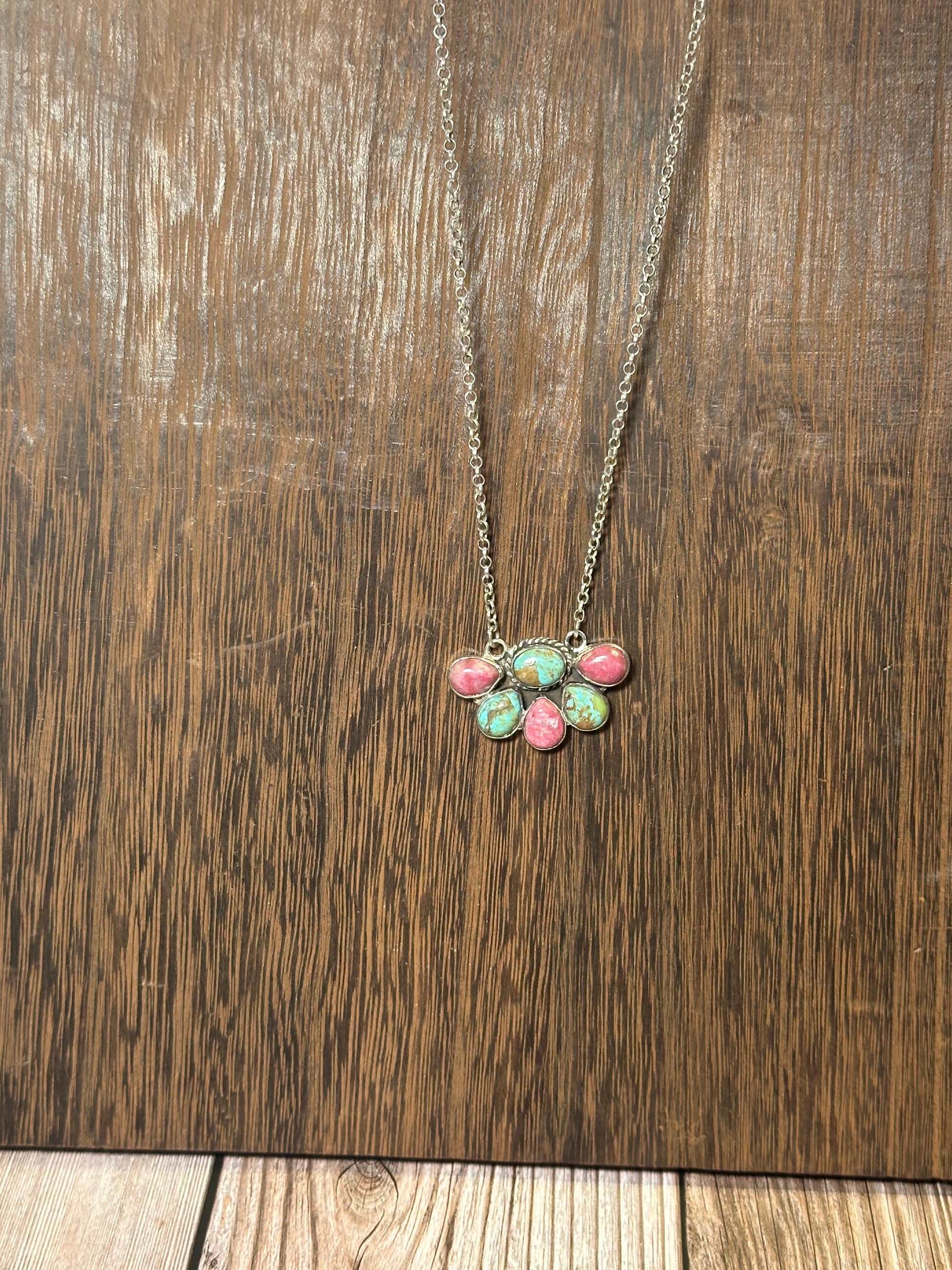 Handmade Sterling Silver, Rhodonite & Turquoise Necklace